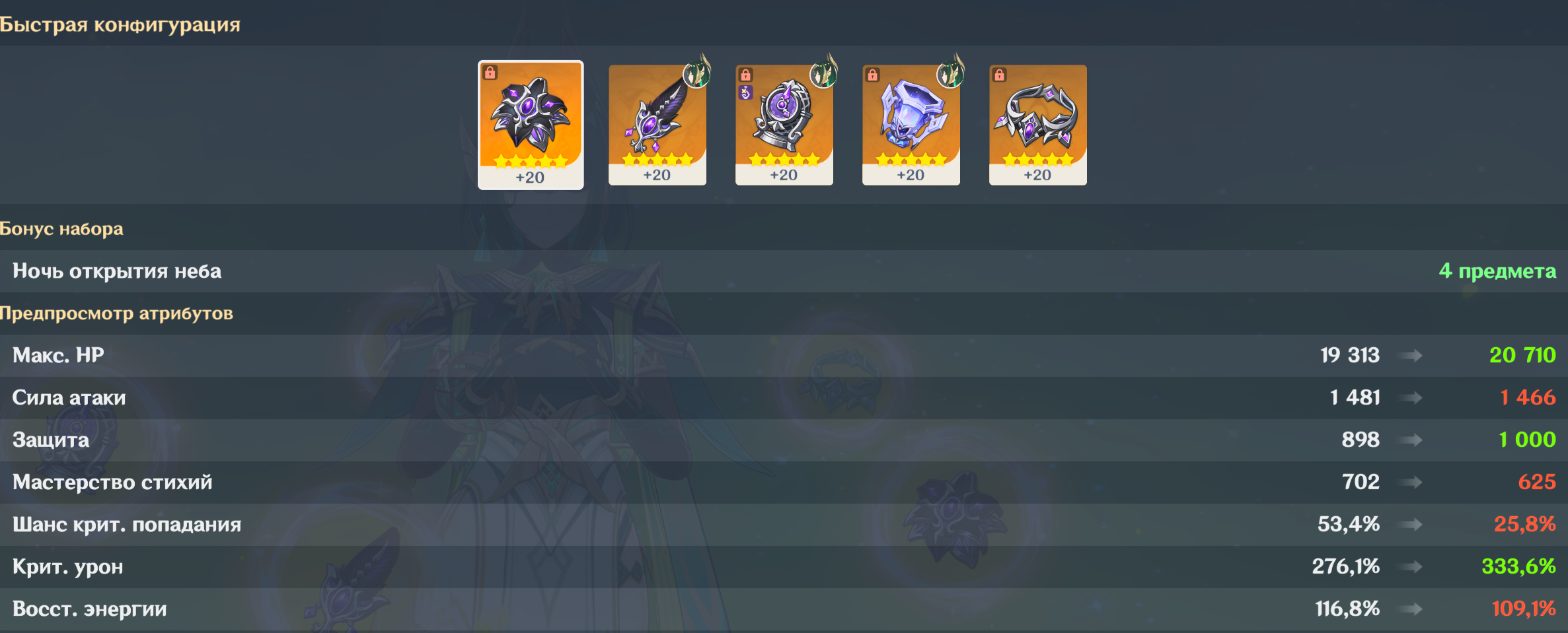 Годная палка, так-то, для Эскофье и Дыни, остальным не оч, на р5 считай 48% атаки, как у БП, так ещё и 36% речарджа. Ещё и высокая база и немного КШ, жаль конечно, что до р5 фиг доберешься. А вот меч не оч, кому вообще не пофиг на ульту, Скирк? Там больше нормалы бьют, ульта ситуативно.