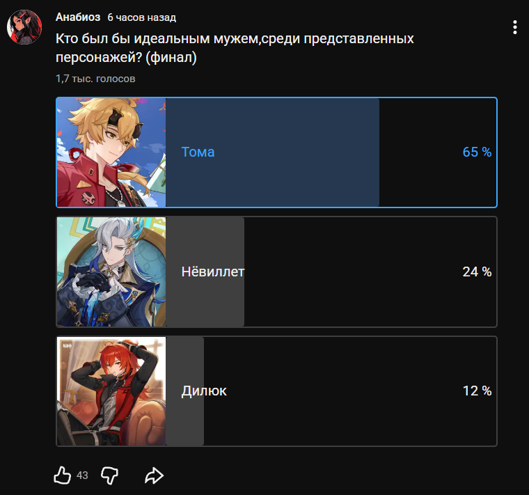 Ой, девочки, я уже давно лично для себя решила что моим идеальным мужем мог бы быть только Дотторе🤪 или Рери👿 Таким не страшно доверить воспитание деток:3