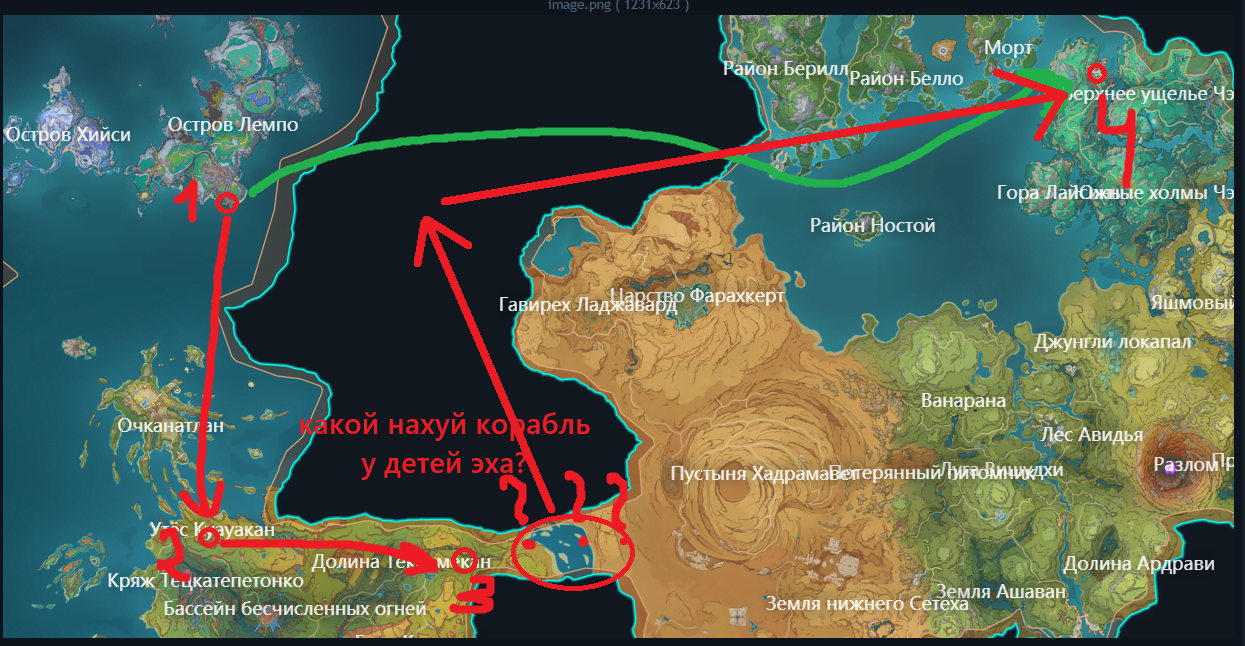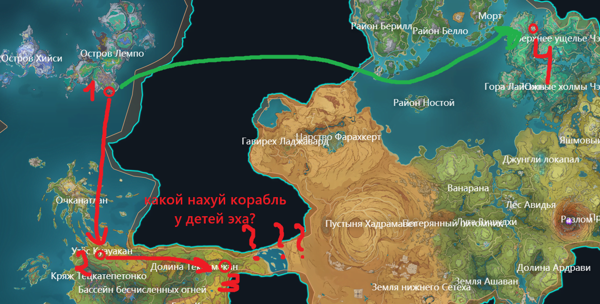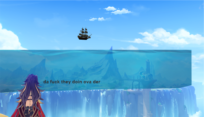 На прямую до порта Илун не добраться — море-то есть, но на подходе к Фонтейну ебаная ступенька (причём даже не Фонтейнская ступенька, а так, левая какая-то) мешает. Да даже если от Детей Эха груз отправлять (у них, оказывается, есть "порт"), то всё равно этот водопад возле Фонтейна мешать будет.