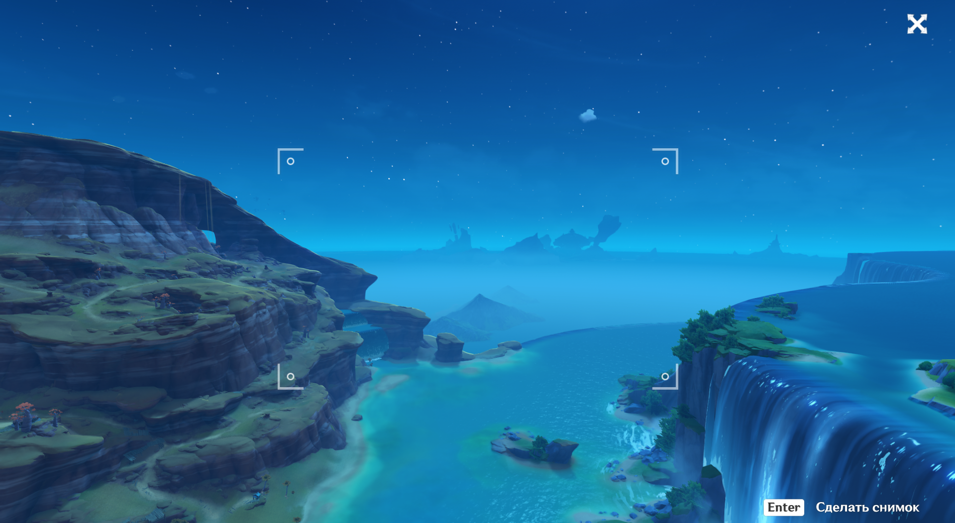 И афигительность встречи не только в этом. Они все решили пикник замутить и под конец диалога Паймон выкрикнула "А теперь пойдём веселиться!" и тёмный экран следом. Ну всё, думаю я, встреча закончена... А вот нет! Меня тепнуло на какой-то берег, где вот они - все мои ребята, весь мой Рыба-Меч2 отряд, с Кокоми в отдалении. Вот это, блин, приятно. Реально ламповая встреча.