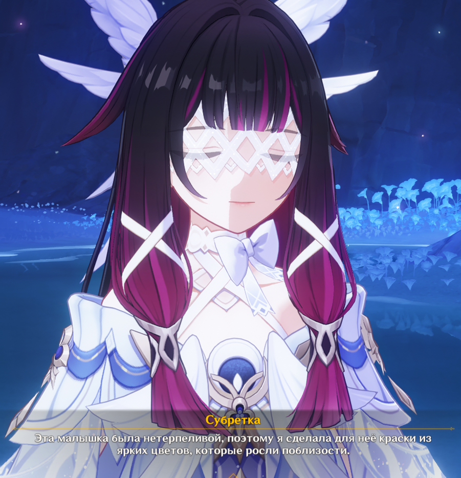 >>5854435 У нее весь личный кв про это. У нее в саду растет странный гриб, который она постоянно жрет. А потом оказывается, что это проявление грибного божества вроде Замарана из разлома, типа того