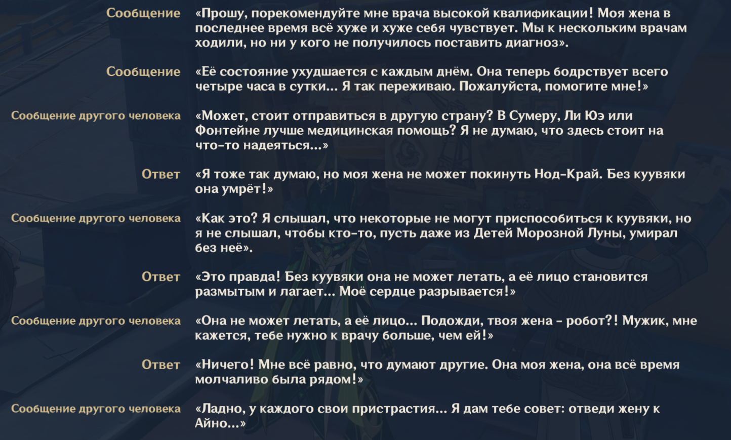 >>5854945 У нас целый ивент такой был, правда давно уже, но я до сих пор помню как проигрывал с квестов про уборку кала для нпц №890. Еще скрины кидали как торт там чистит вилкой. Это было настолько хуево что даже забавно.