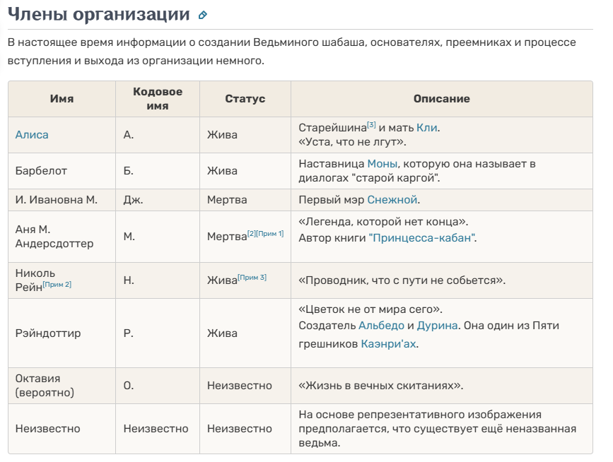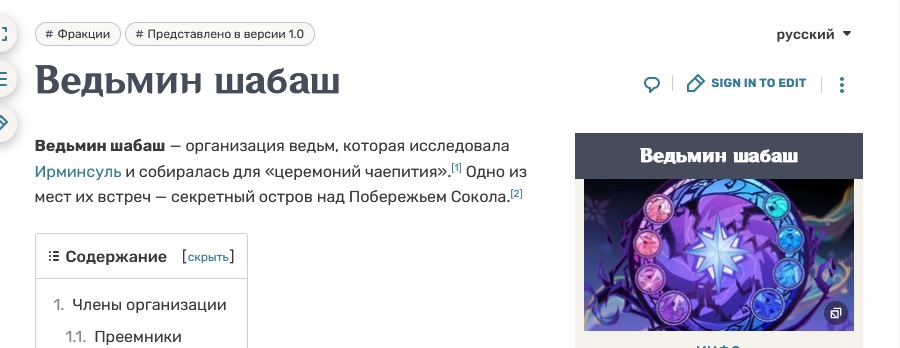 >>5857698 >Шабаш - ето друзья шотодракончика, а не ведьмин кру >Ведьмин шабаш — организация ведьм, которая исследовала Ирминсуль и собиралась для «церемоний чаепития».[1] Одно из мест их встреч — секретный остров над Побережьем Сокола.[2]