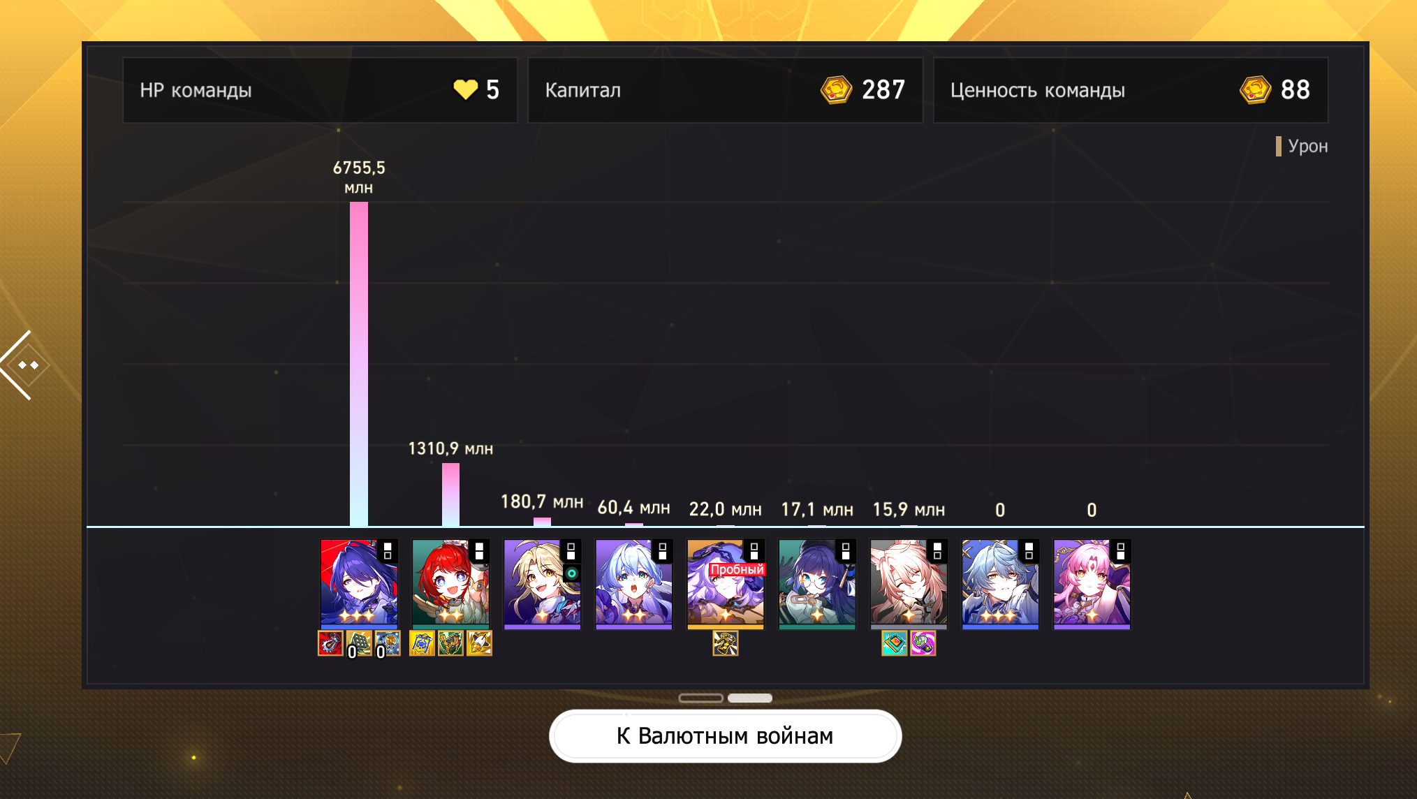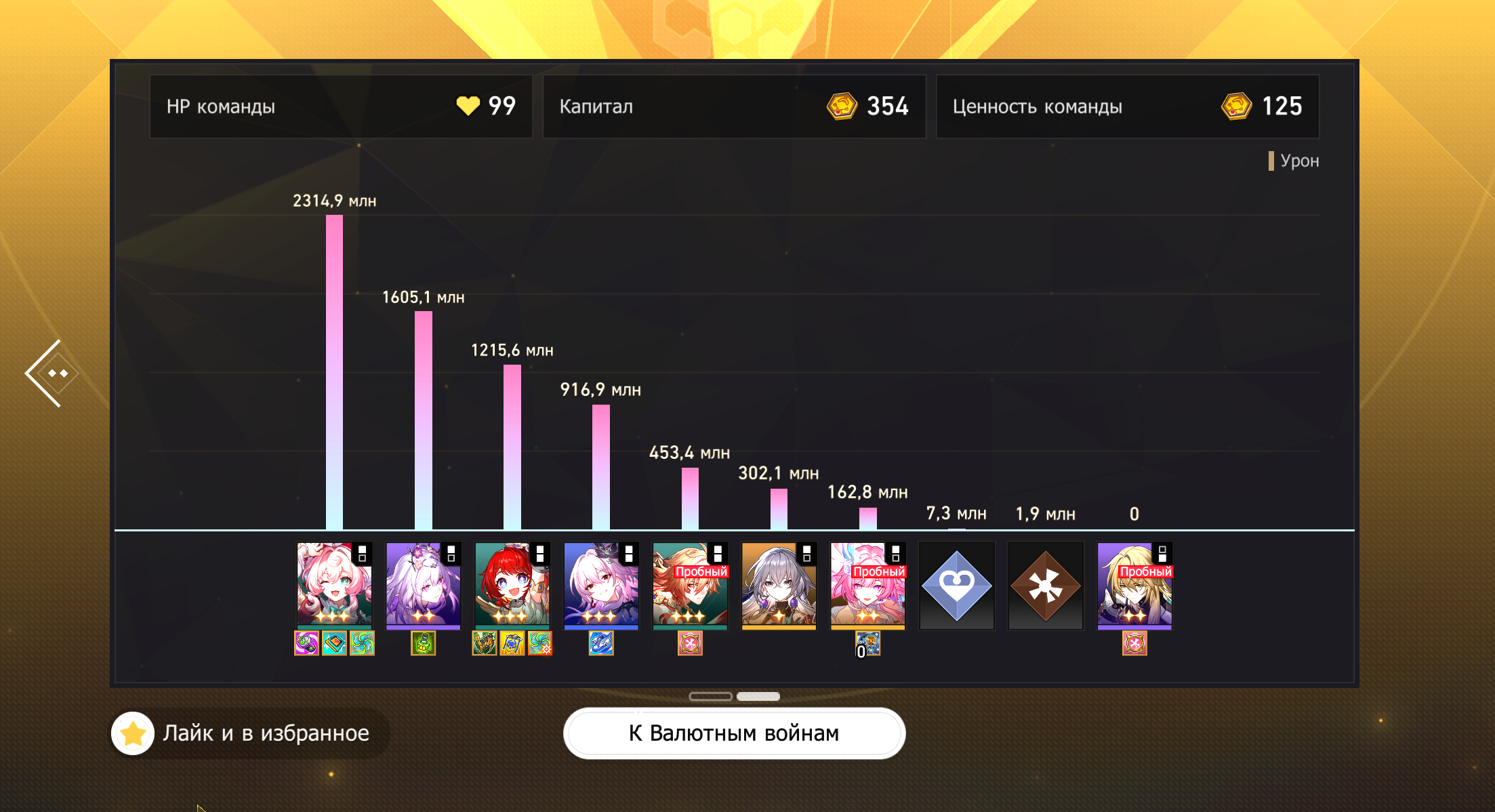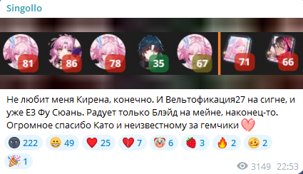 Как же Кларочка е6 с сигной Блейда ебет под Трибидосом е2! Пока что моя первая 3зв проходка на этом ресете. Бонускокал с е0 Лисяо, Авантюрином, Юнькой и Зарянкой еле закрыли на 10м цикле под баффом смеющегося от их бессилия лупочада Ну и пробитие без конст не дамажит нормально