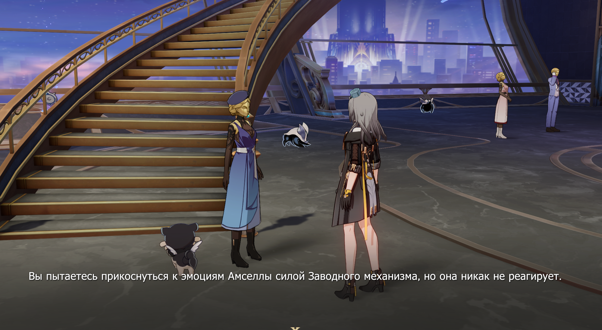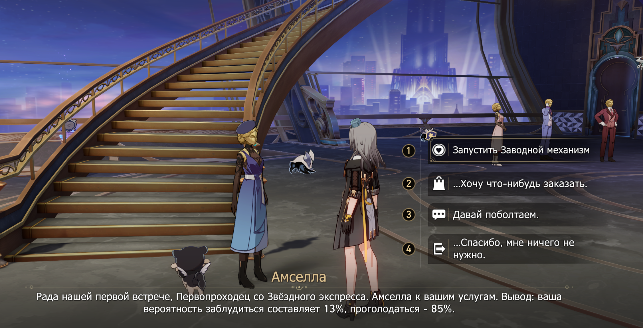 Herta: "You stand on both of Nous’s computed paths. In both, you become the Aeon of Remembrance. The only difference is whether you preserve this world until the end of time." Kafka (relaying Elio): "When the end comes, Remembrance will preserve all. You and the Nameless will live forever — in the past, the present, and the future."