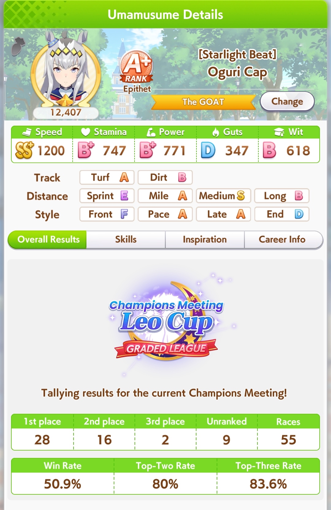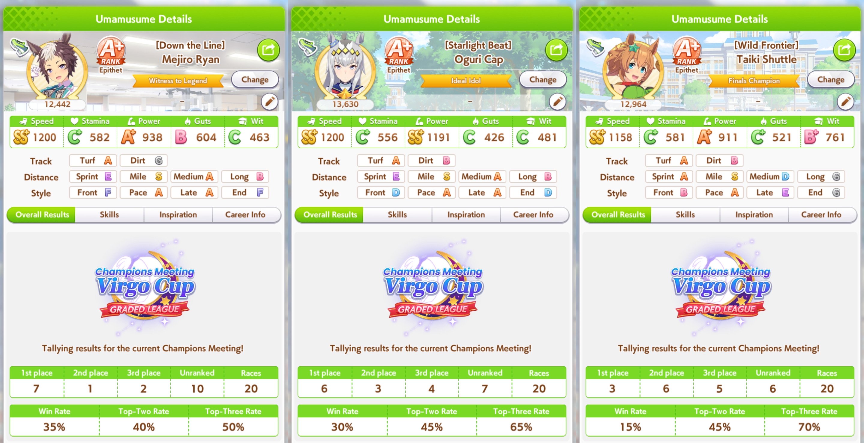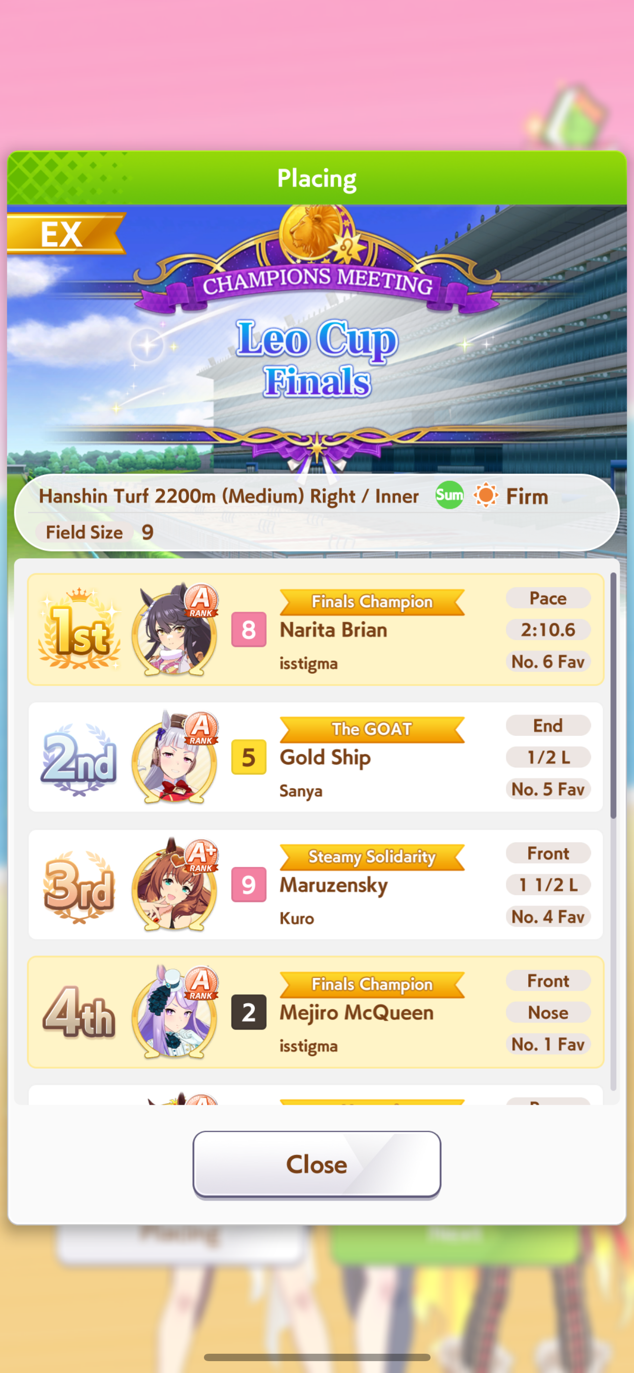 Я понимаю, что мета из глаз каждого относительна, но после очевиднейшей имба Марузи, Огури была топ 2 лошадью турнира. Кто бы мог подумать. Энды и Голши топ 3 по распространённости в забегах и также очень сильная была и часто побеждала. Протыки сосатб.