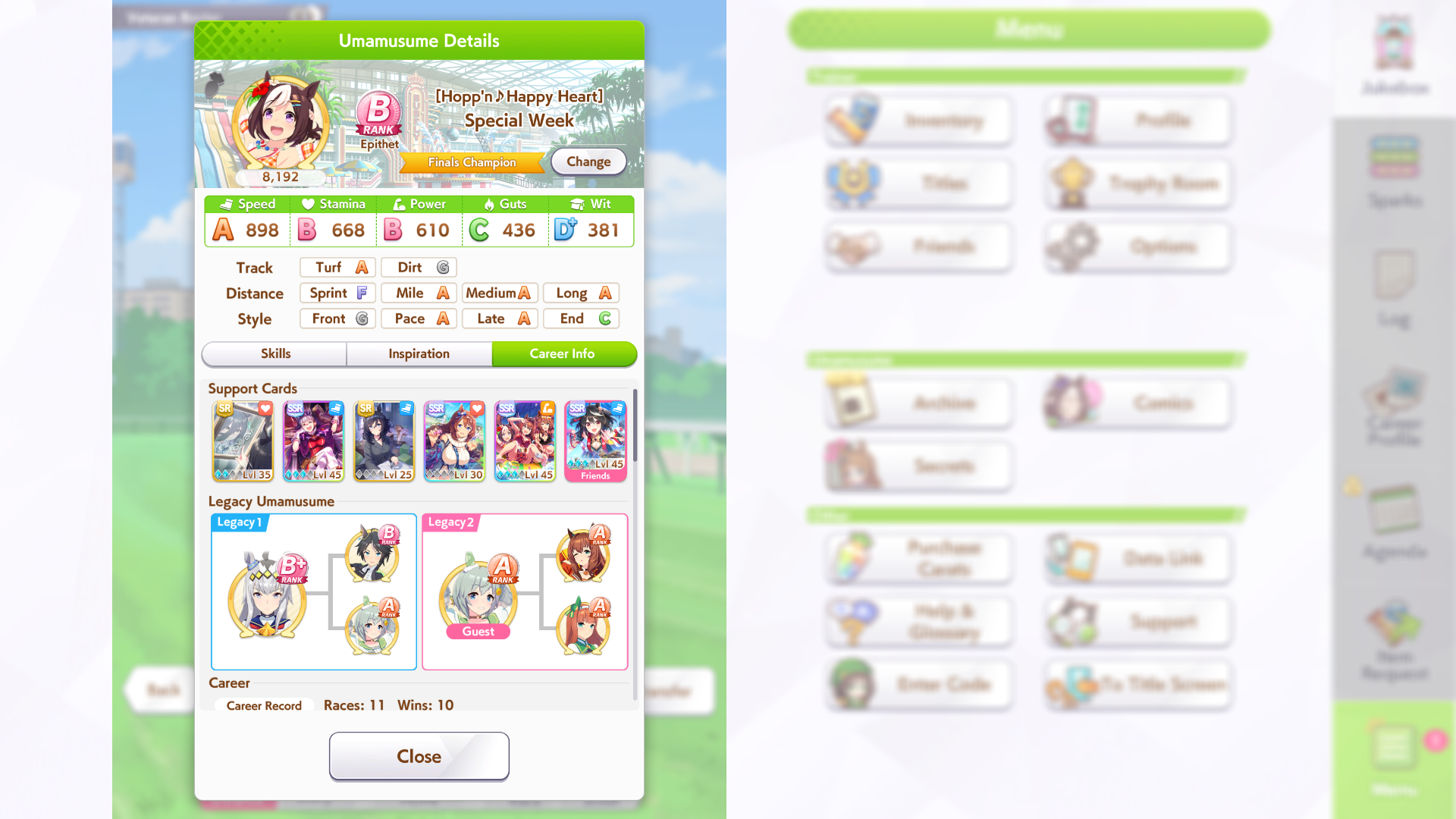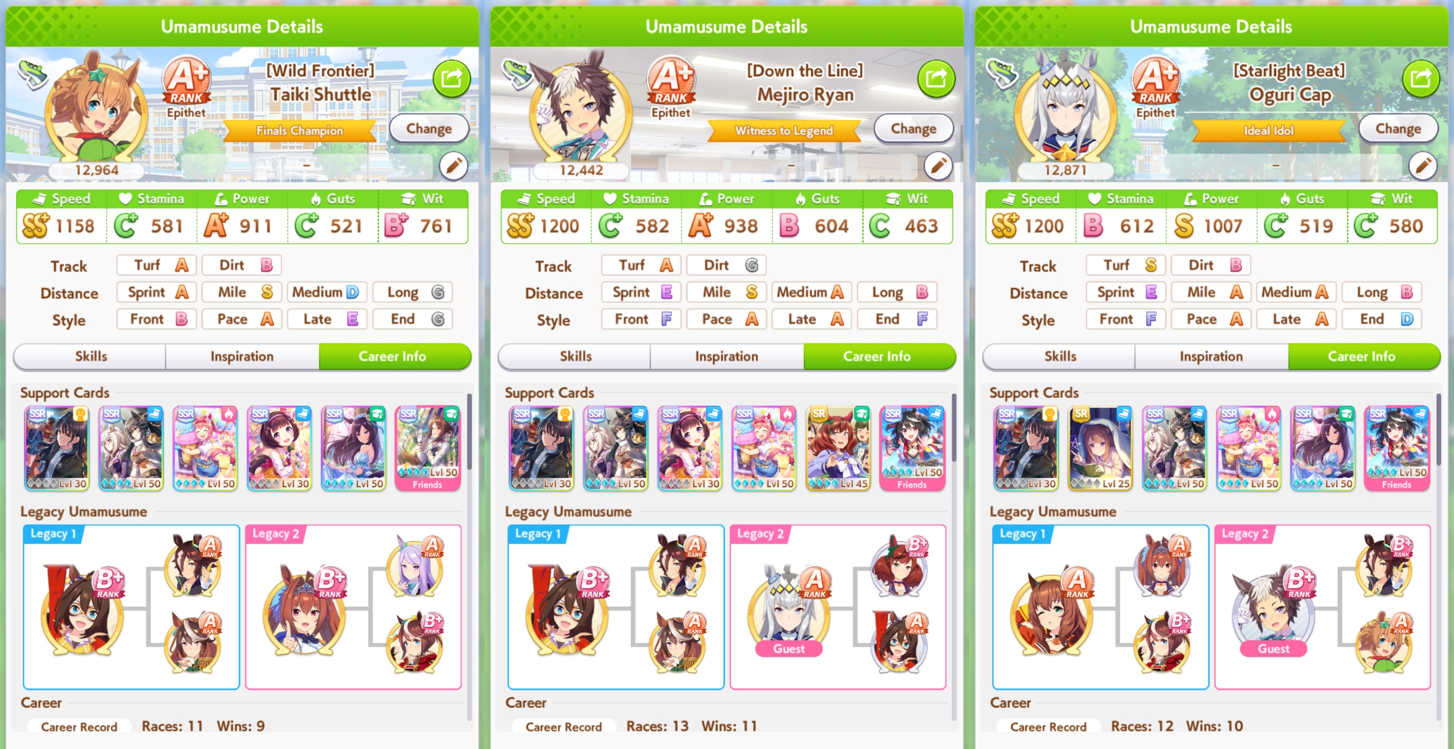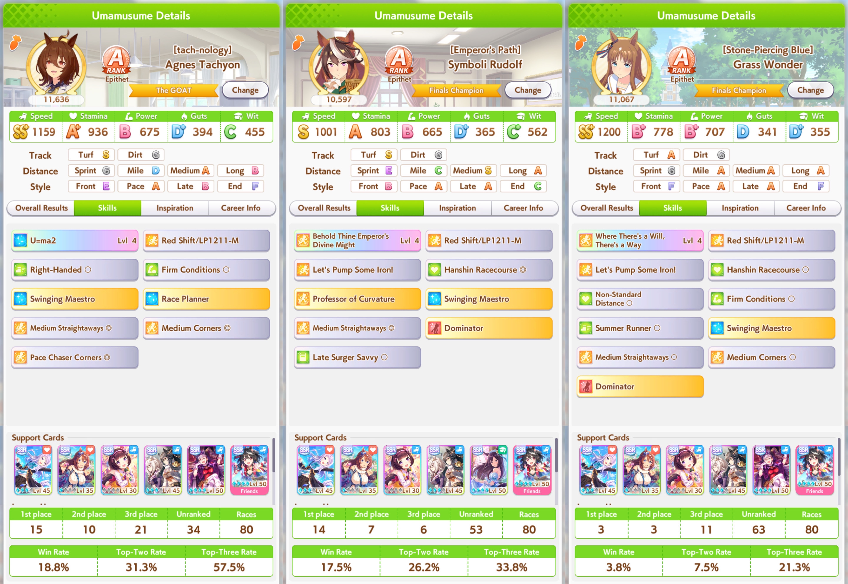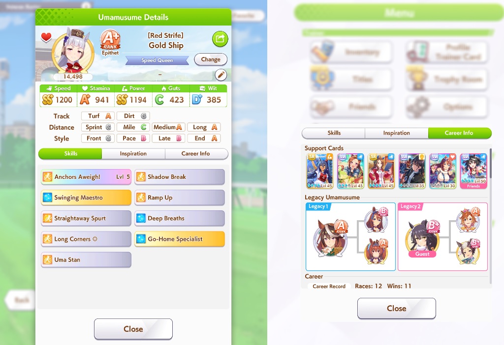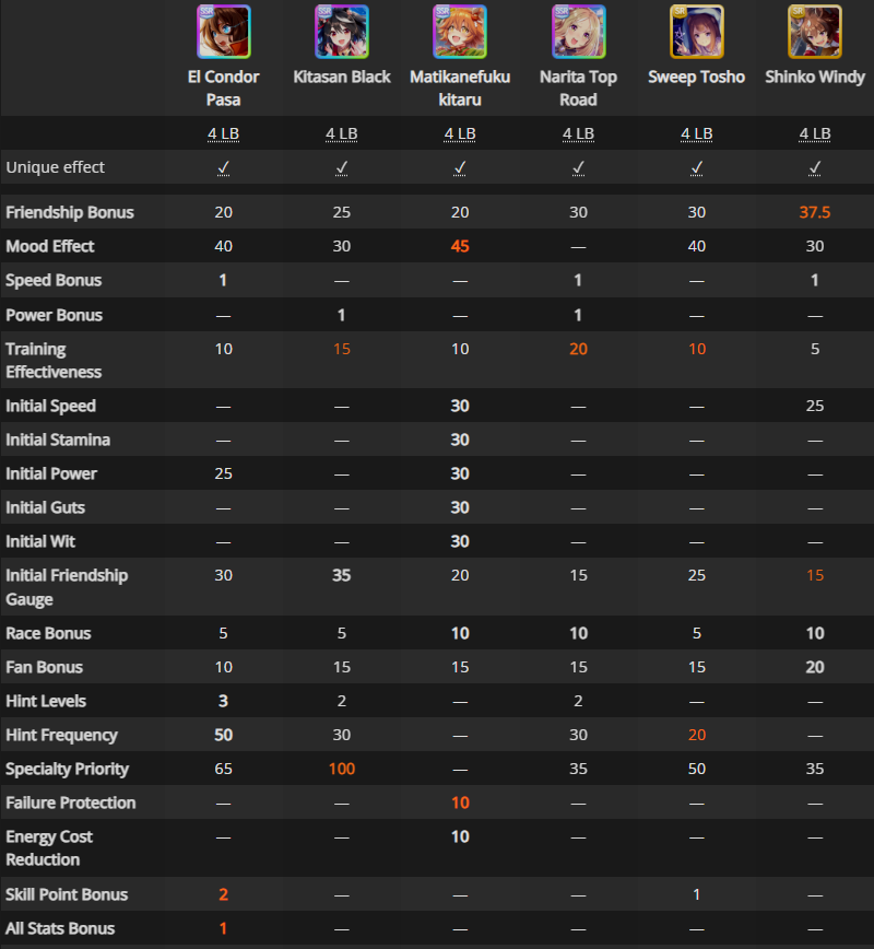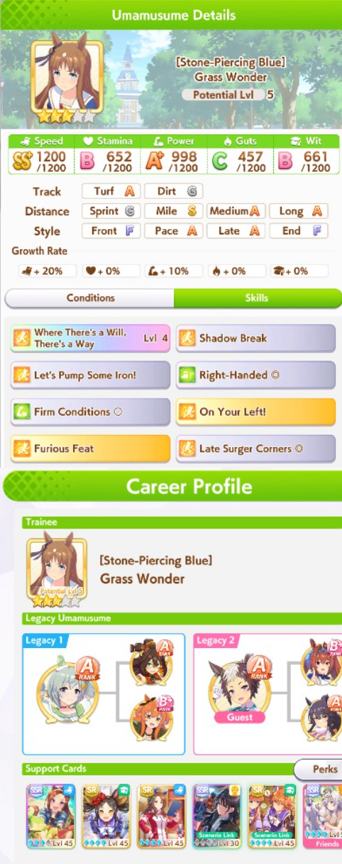 Ʊ Поиск нужных саппортов и легаси: https://uma.moe/inheritance — на сайте также есть примерное расписание всего контента на 4 года вперёд и примерный тир-лист саппорт карточек