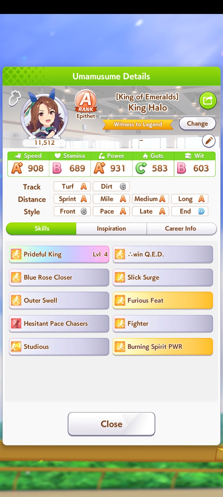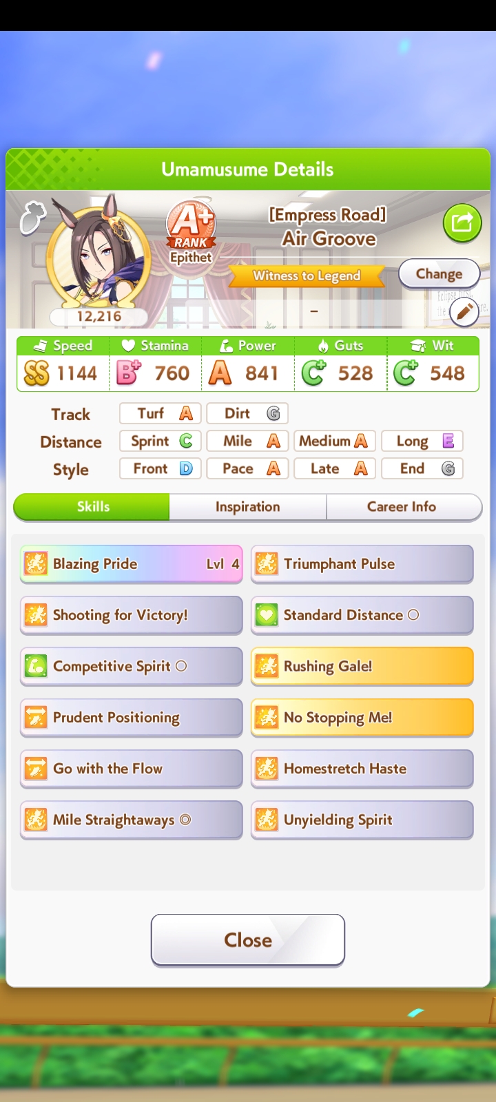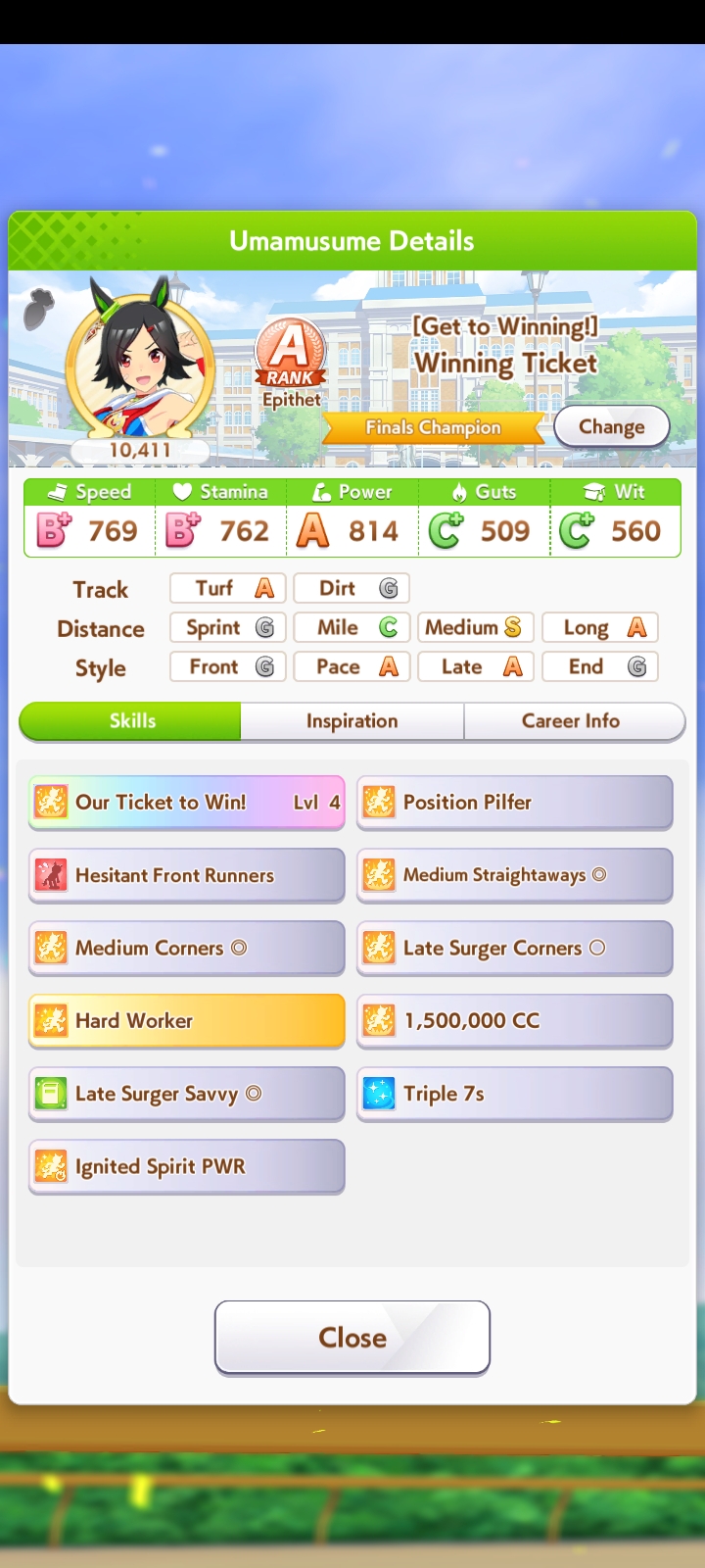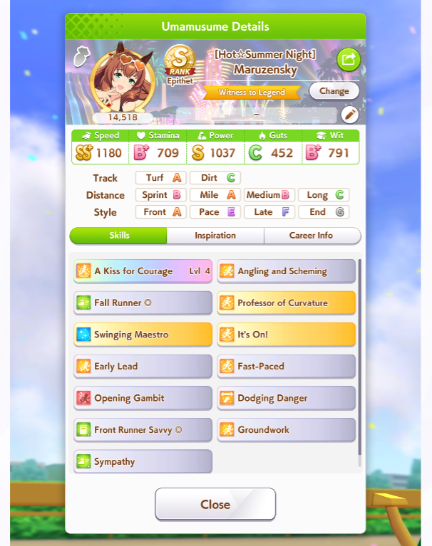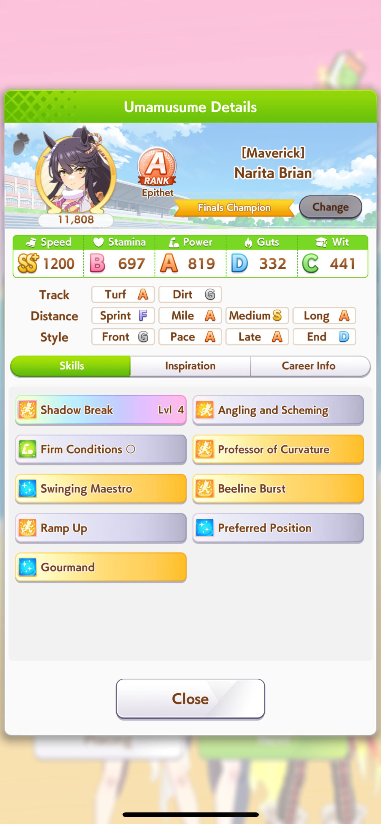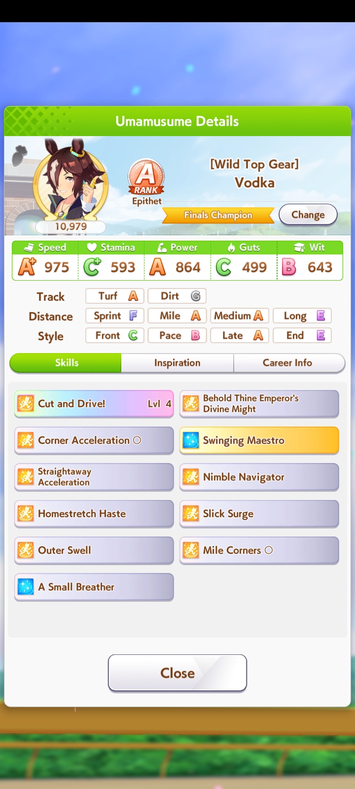 Ну такое зачем-то пролез в А лигу, когда после семи просёров подряд мои умы зачем-то побеждать решили. Ну правда первые пять можно сказать не основной состав бегал, так взял тех кто не очень вышел чисто посмотреть. Но ебут прямо жестко, это да. Если меньше 1к спида и 500 гатса, то лошади прямо отлетают на финише. Пару раз моя Спе прямо на ногтях первое место выцарапывала. Ей бы статы конечно по больше чуть-чуть, а так только надеяться что у противников ускорялки поздно включатся из-за низкого вита или бад муда. Ну и Грув один раз даже победила, еще бы ей самой бэд муд по реже кидало, так то единственная моя А+ в принципе, но бежит она странно. Постоянно отстаёт чуть ли не до лэйтеров и бежит в конце пака, особенно когда в забеге куча пэйсеров. Понял кому тот навык с карточки Браян подойдёт, ей точно, а то задолбала в конце бежать делая вид что она лэйтер, можно ей еще и помп айрон взять ради лулзов тогда лол, гемблить так гемблить. Посмотрим. По хорошему надо перекачивать хотя бы половину тимы, а лучше всех, но не уверен что смогу.