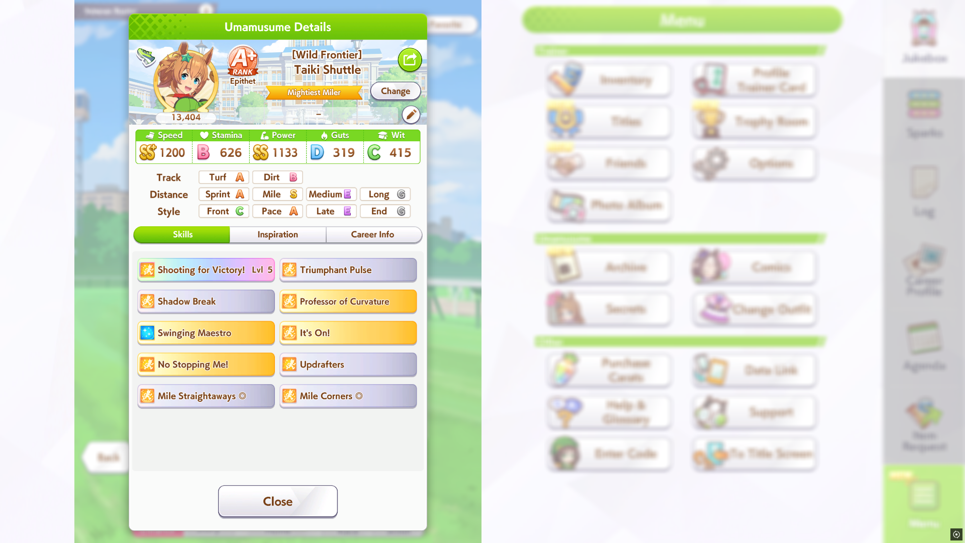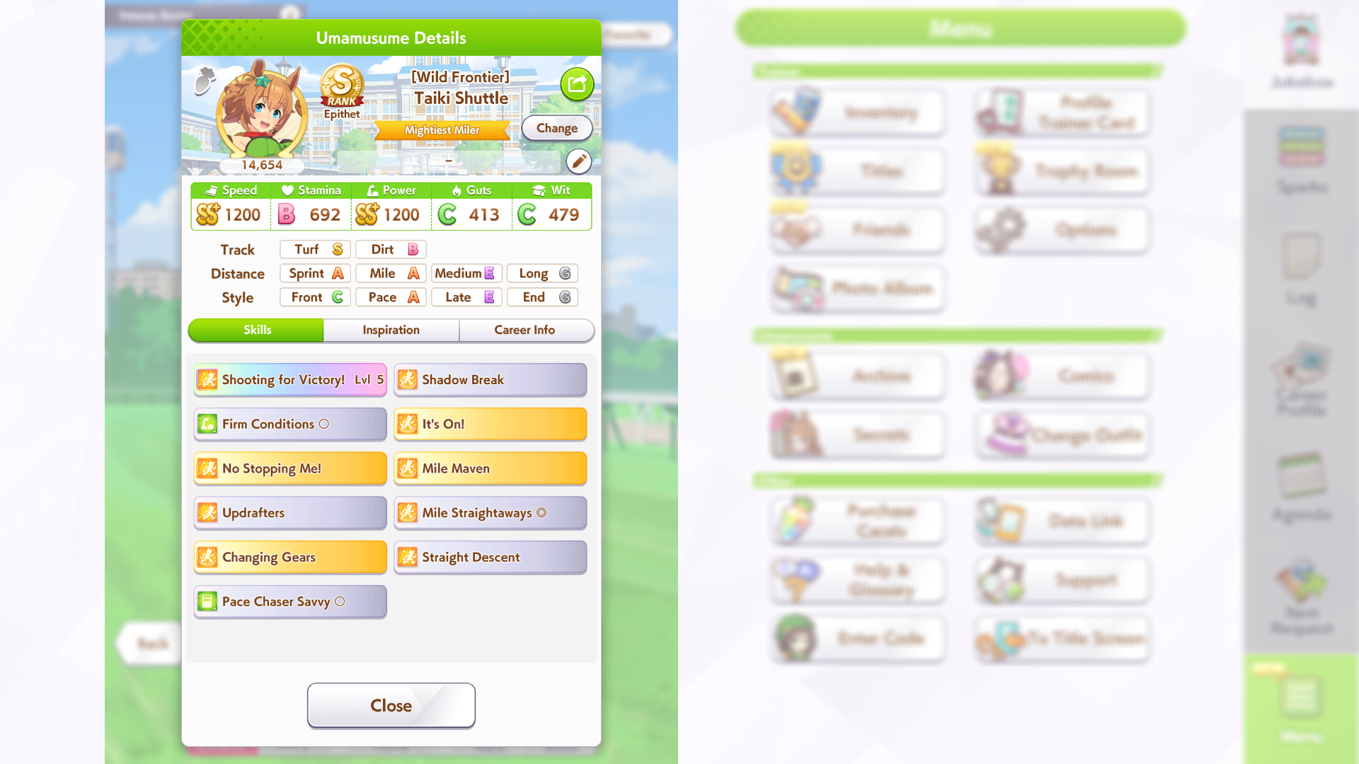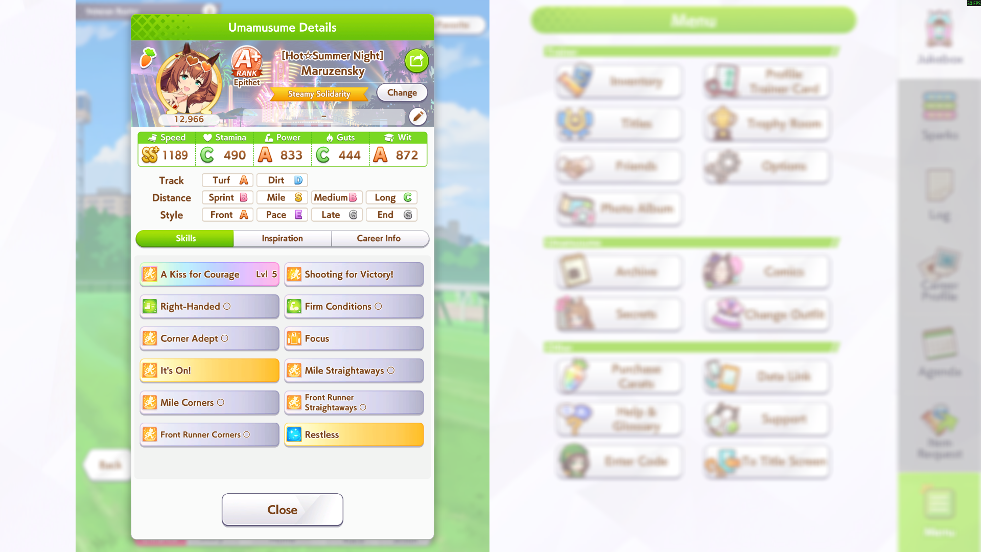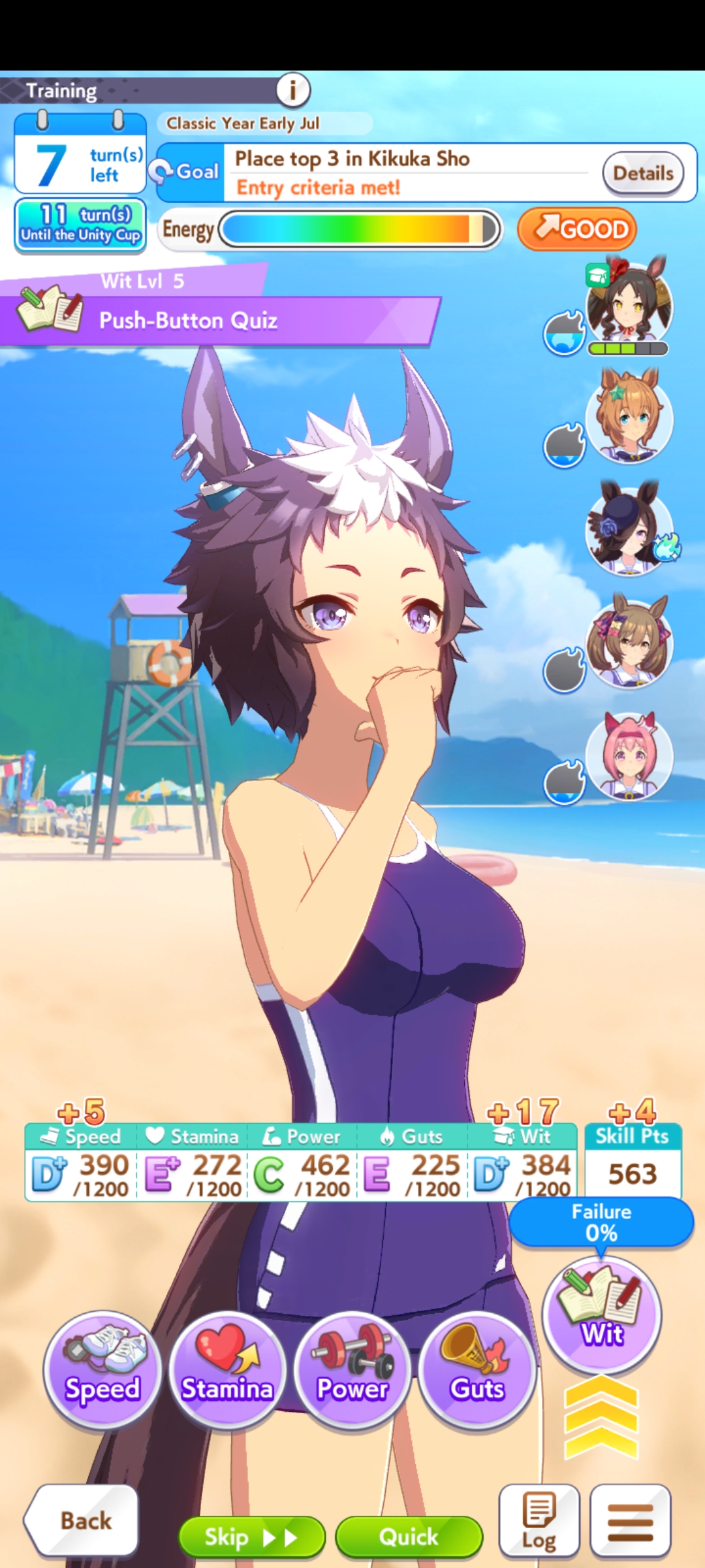 Ну такое зачем-то пролез в А лигу, когда после семи просёров подряд мои умы зачем-то побеждать решили. Ну правда первые пять можно сказать не основной состав бегал, так взял тех кто не очень вышел чисто посмотреть. Но ебут прямо жестко, это да. Если меньше 1к спида и 500 гатса, то лошади прямо отлетают на финише. Пару раз моя Спе прямо на ногтях первое место выцарапывала. Ей бы статы конечно по больше чуть-чуть, а так только надеяться что у противников ускорялки поздно включатся из-за низкого вита или бад муда. Ну и Грув один раз даже победила, еще бы ей самой бэд муд по реже кидало, так то единственная моя А+ в принципе, но бежит она странно. Постоянно отстаёт чуть ли не до лэйтеров и бежит в конце пака, особенно когда в забеге куча пэйсеров. Понял кому тот навык с карточки Браян подойдёт, ей точно, а то задолбала в конце бежать делая вид что она лэйтер, можно ей еще и помп айрон взять ради лулзов тогда лол, гемблить так гемблить. Посмотрим. По хорошему надо перекачивать хотя бы половину тимы, а лучше всех, но не уверен что смогу.