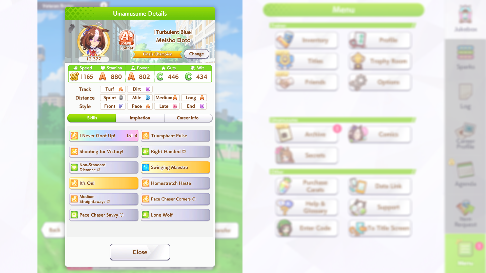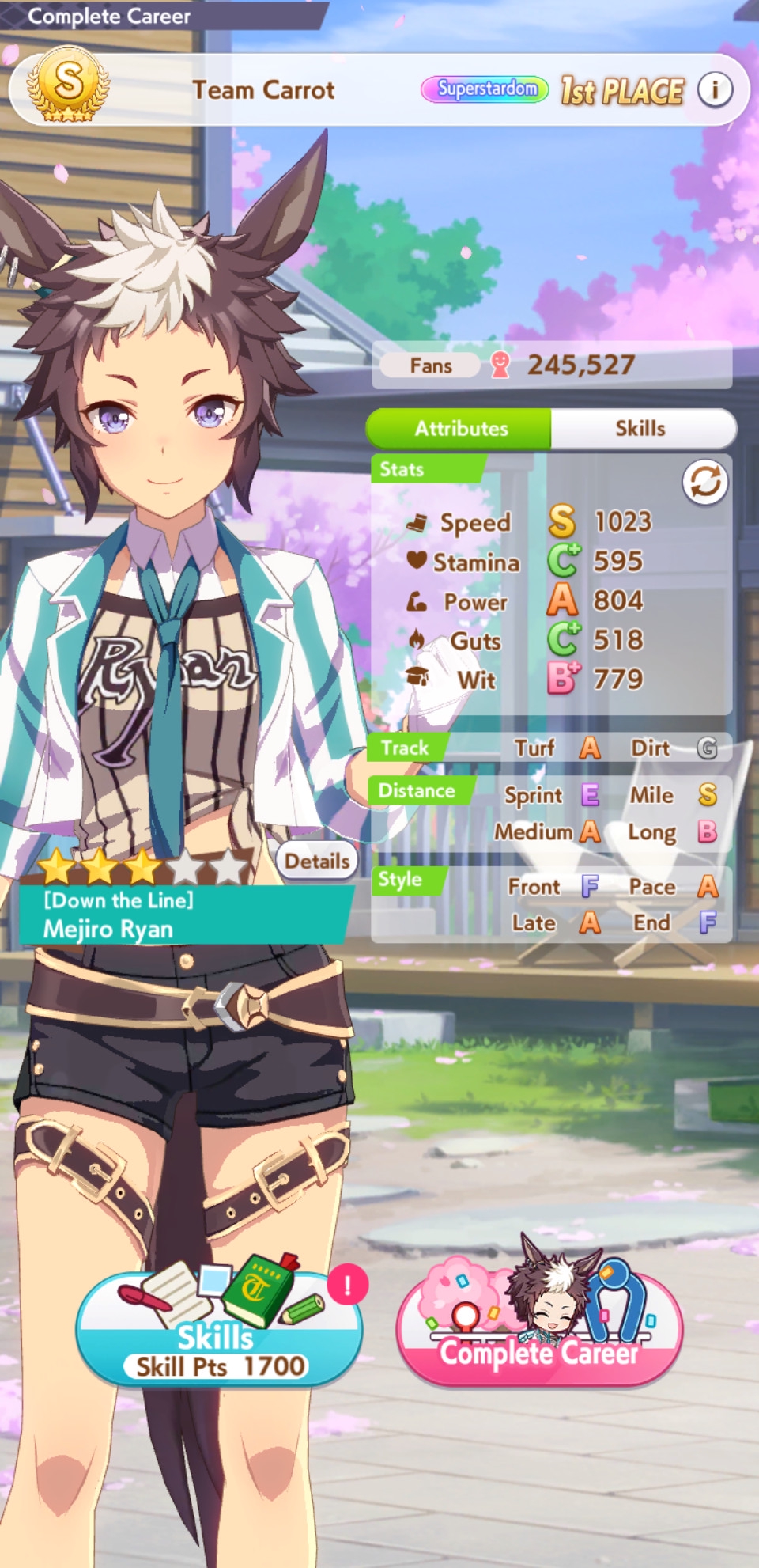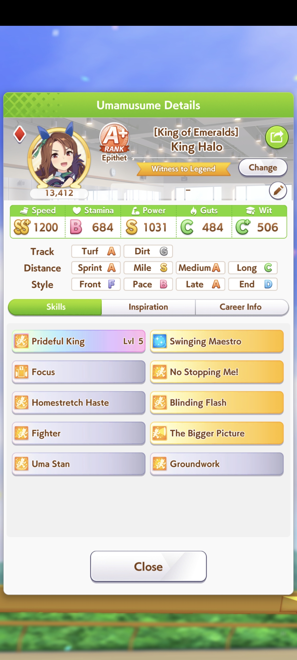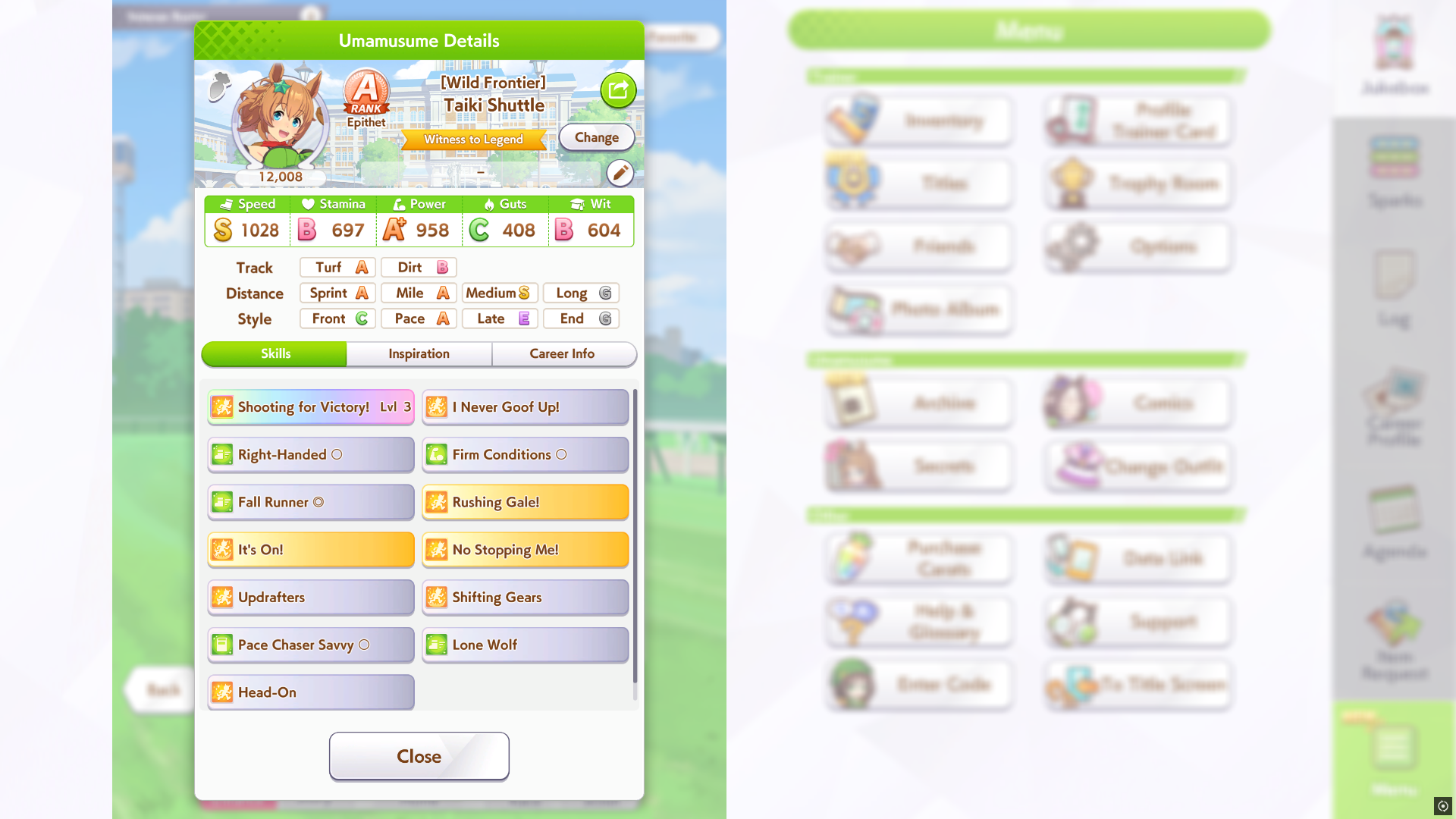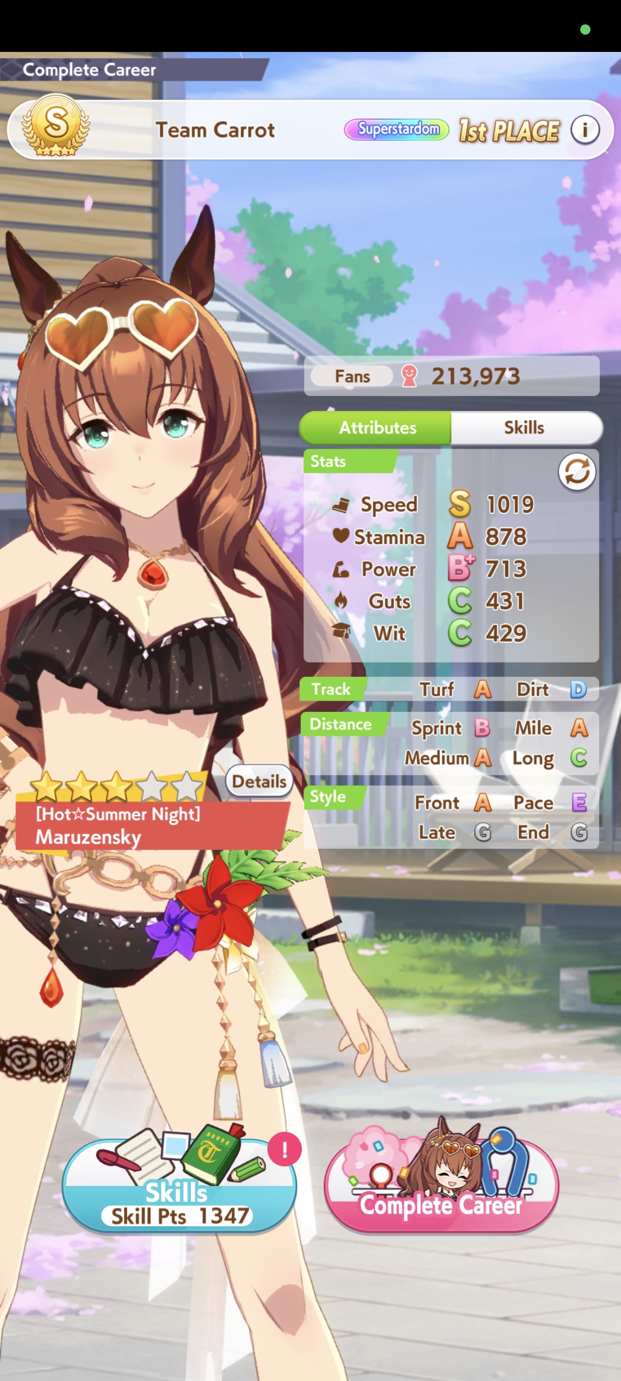 Ну такое зачем-то пролез в А лигу, когда после семи просёров подряд мои умы зачем-то побеждать решили. Ну правда первые пять можно сказать не основной состав бегал, так взял тех кто не очень вышел чисто посмотреть. Но ебут прямо жестко, это да. Если меньше 1к спида и 500 гатса, то лошади прямо отлетают на финише. Пару раз моя Спе прямо на ногтях первое место выцарапывала. Ей бы статы конечно по больше чуть-чуть, а так только надеяться что у противников ускорялки поздно включатся из-за низкого вита или бад муда. Ну и Грув один раз даже победила, еще бы ей самой бэд муд по реже кидало, так то единственная моя А+ в принципе, но бежит она странно. Постоянно отстаёт чуть ли не до лэйтеров и бежит в конце пака, особенно когда в забеге куча пэйсеров. Понял кому тот навык с карточки Браян подойдёт, ей точно, а то задолбала в конце бежать делая вид что она лэйтер, можно ей еще и помп айрон взять ради лулзов тогда лол, гемблить так гемблить. Посмотрим. По хорошему надо перекачивать хотя бы половину тимы, а лучше всех, но не уверен что смогу.