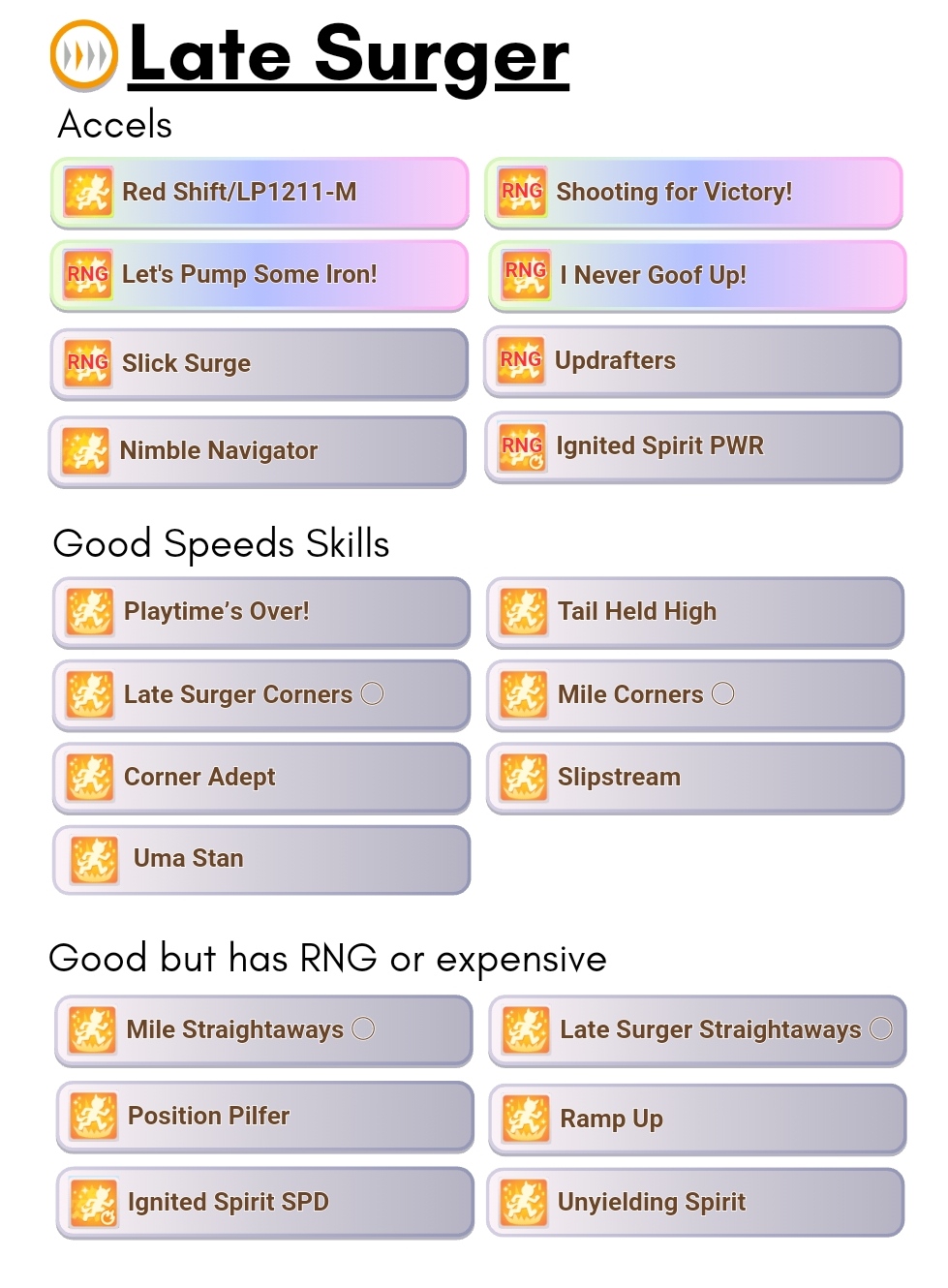 Я хз почему так, Шаттл реально везде, но Огури каким-то чудом всегда обходит. Лейт Суржеры сильнее, но так как там такая давка сзади, то вот реально лотерея, сможешь ли ты выбежать через эту толпу, в половине забегов они смещаются чуть ли не на 8ю дорогу, чтобы всё это оббежать.