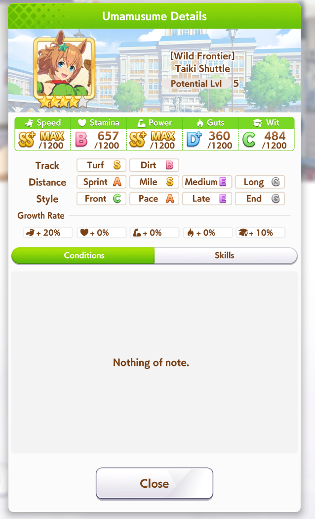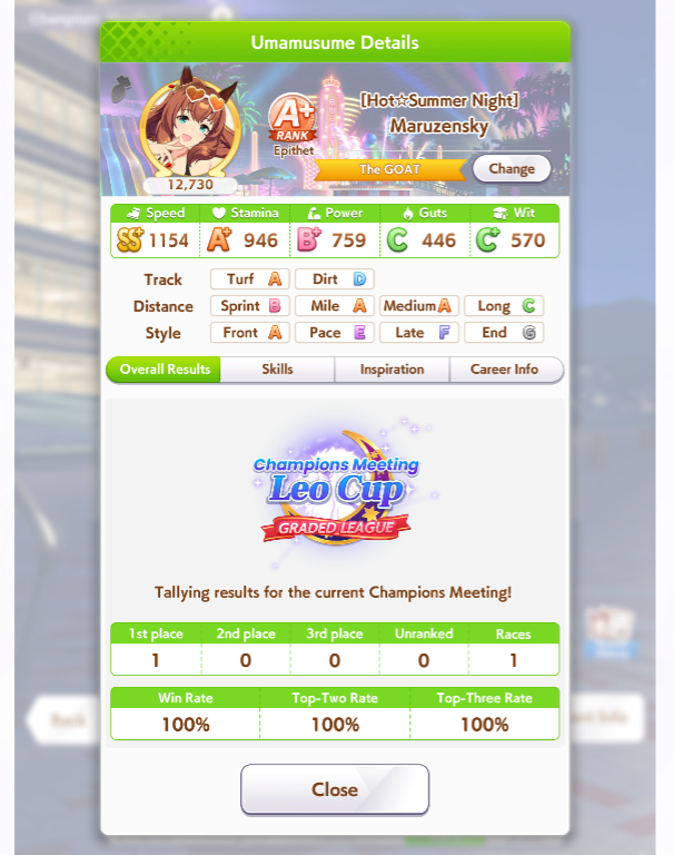 Ну тут жопа полная, первый въебанный турнир 100% будет, Тайки нет - шансов на победу тоже. Водка бесполезный кал даже с миллиардом скиллов и 1200-1200. ГШ иногда выигрывает, когда прокнет нсм вовремя, либо с 6 позиции. Мару впринципе нихуя не выигрывает, ибо в каждом забеге по 1, а то и по 2 Сузуки, которые впринципе нихуя не выигрывают, но их ставят поднасрать.