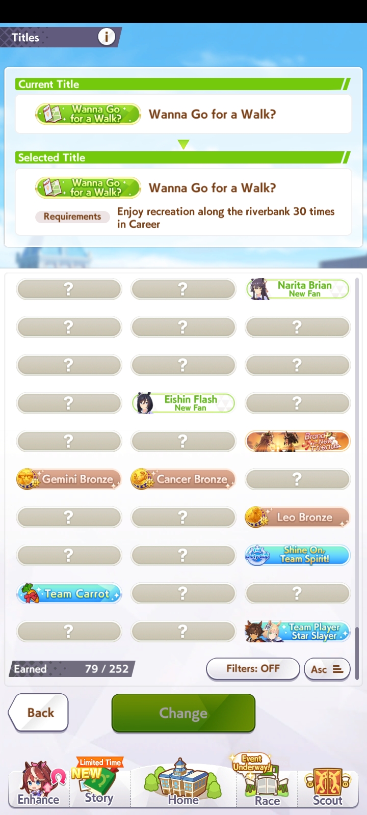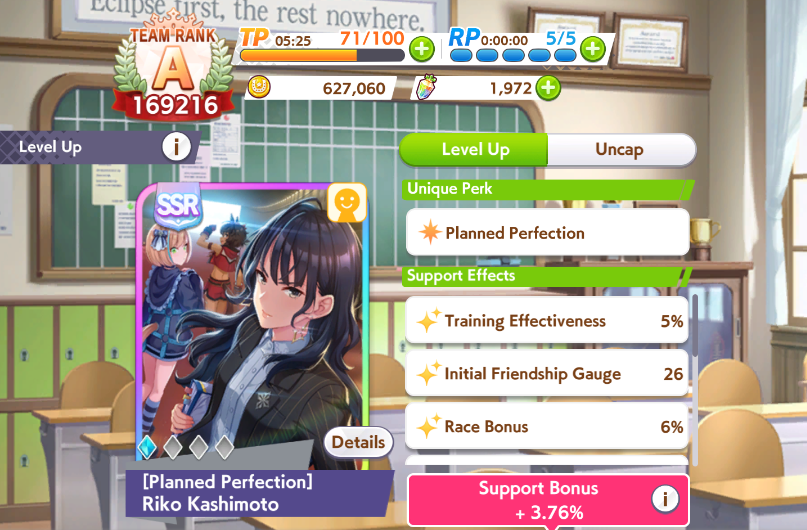 >>5870904 Есть общий уровень команды, он растёт от прока огоньков. И за победы на тим трайлсах. Надпись перед гонкой даже есть, +20 ко всем статам. Поэтому и важно все выиграть. Иначе у тебя тренинг уровень будет ниже, и ты статы теряешь с тренировок.