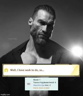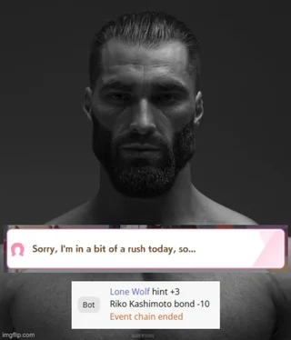 >>5870014 Не, я в том-то и дело, что сразу не геймторе новые ивенты смотрю чтобы не прервать цепочку или выбрать ненужный стат. Поэтому и фигею что Райс не даёт маестро