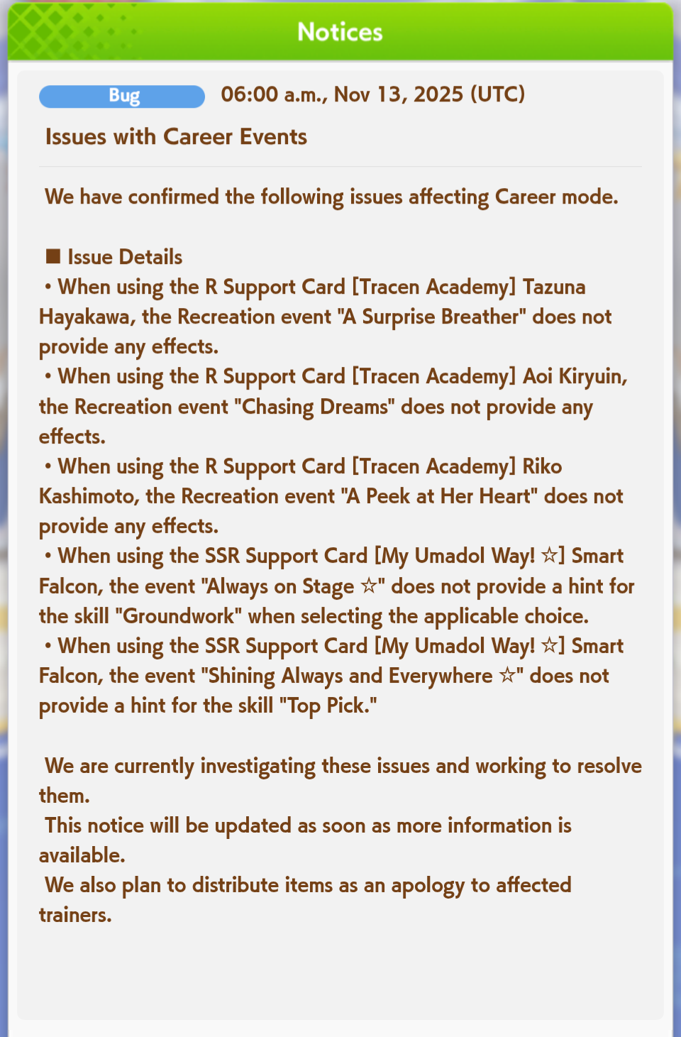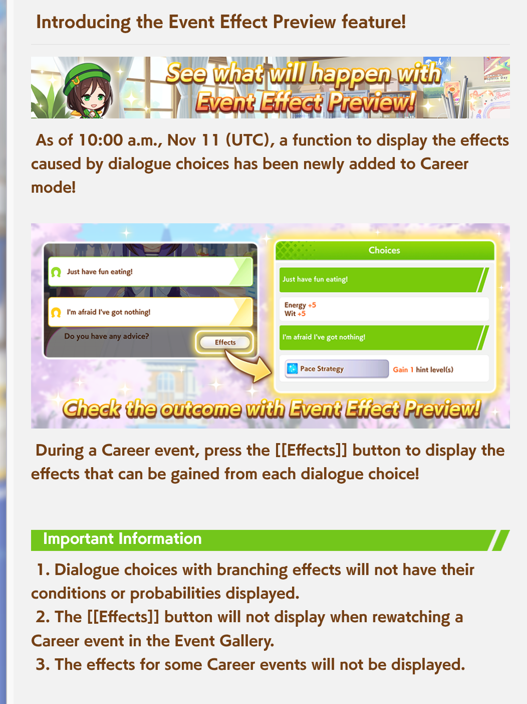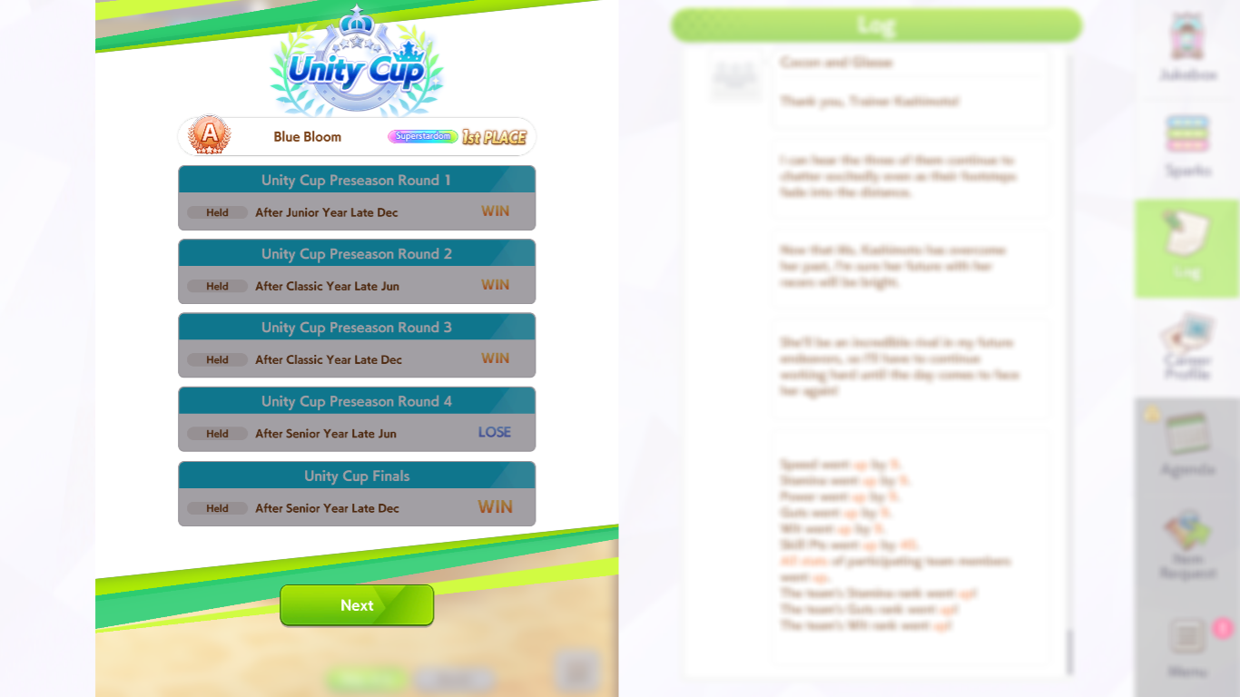 Основная проблема, что рандом жёсткий. Оно требовательнее к скиллу в плане, можно попытаться подождать пока лошадки с огоньком в вит закатят, ты бомбанёшь и зарегенишь дохера энергии. А потом бомбанёшь на павер или спид и ты с тонной статов. Но в итоге рандом трахает. Хз, мне не нравится, с одной стороны это типа новизна, и не надо 100к фанов к 3му году. Но рандом подбешивает. 11 немного подкрутят в нашу пользу, хоть эвенты с карточек чаще будут прокать.