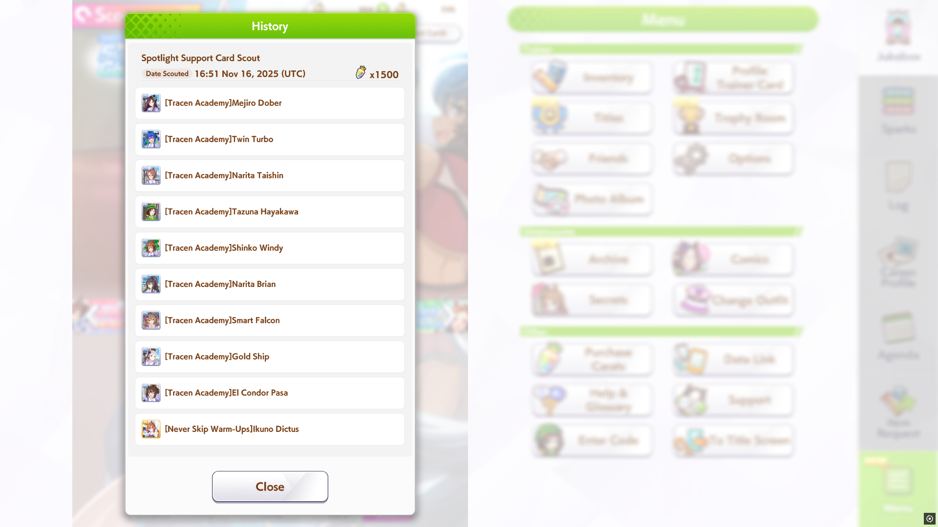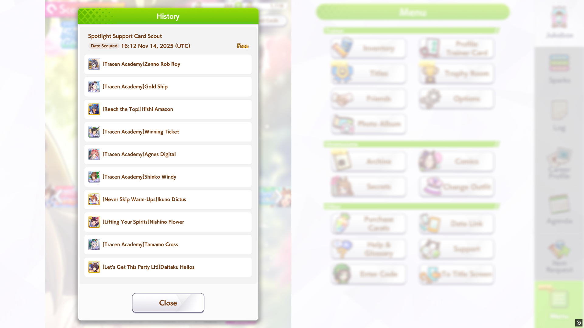 >>5931754 >Ты же с карт поддержки спеллы лутаешь? Только не спеллы, а скиллы. Они же не волшебницы, а буквально кони. С золотой рамочкой получаешь с карт, либо с ивентов карьеры. Просто желтые и синие можешь получить с предков, которых выбираешь перед карьерой.