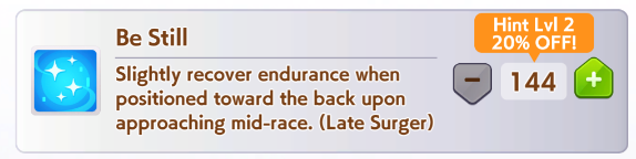 >>5872051 Не он, но я считаю сейчас каждый отдых это шанс въебать забег так как всякие ночные совы ебут сильнее. Поэтому жать на свидание норм, ещё она стамины и гатса насыпает нормально так, нажатие на интеллект насыпает скорости, уж что тебе нужнее и важнее. С 11 числа что-то обещают подкрутить (ванную нихуя не поменяется, шанс как был 50% либо произойдет либо нет). В общем это такая карта, которая потенциально снижает тебе потолок характеристик, но зато шанс совсем проебать уменьшает. Ещё удобно на спринтерах её брать - берешь спарки на мощность и стамины она как раз примерно на спринт насыпет, если нажать синий шарик пару раз на стамине, то и на милю хватить может.