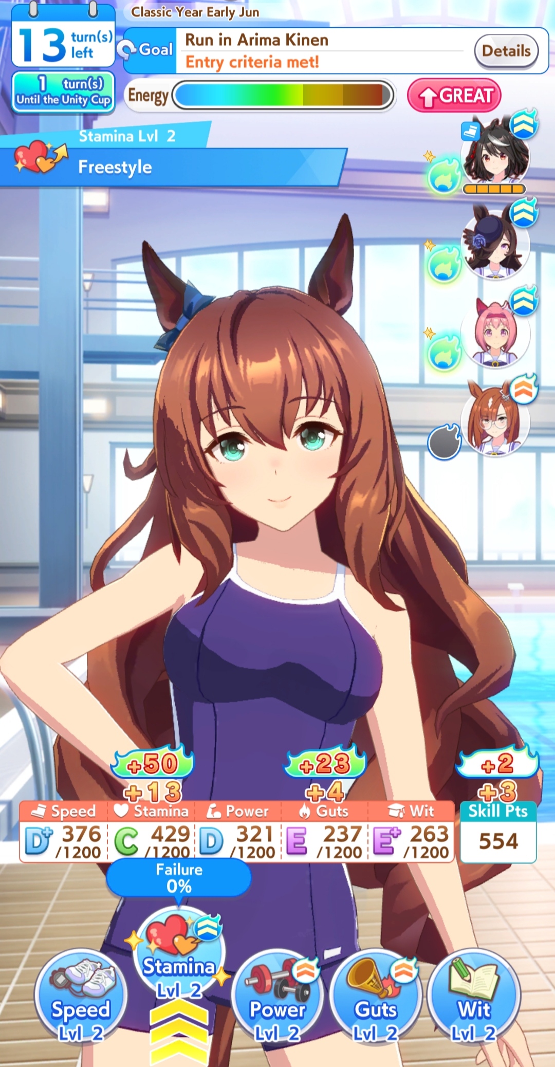 Ну хоть что-то. По крайней мере с ней можно хотя бы на Б финал надеяться, думаю. Это реально единственное что вышло в этом юнити капе с более менее статами. Правда это Грув, а сколько я её не ставил в других чемпионатах - она почему-то никогда не выигрывает, просто не бежала и всё всегда. Но посмотрим может хоть в этом себя как-то проявит. Должно же хоть когда-нибудь прийти её время сиять.
