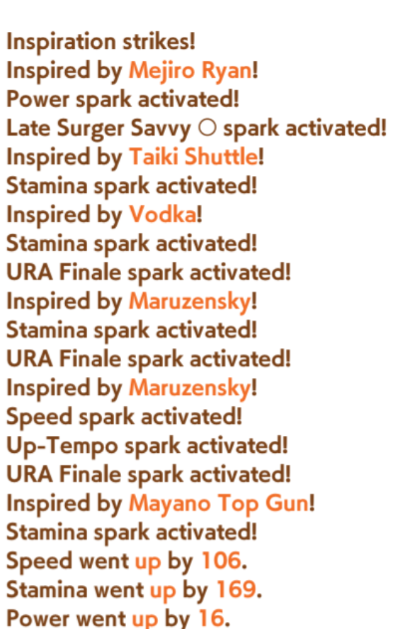 После 13 (ебать я что-то угорел, весь морковный сок выпил) карьер в новом сценарии довольно внезапно оказалось, что несмотря на кажущийся рандом он намного более стабильный по статам. Но зато опять же получить гигаебкую лошадь (по меркам сценария) наоборот будет сложнее по ощущениям, так как тут даже в свою пользу склонить рандом с помощью например спешиал приорити сложнее. Тут мало того, что суппорт с огоньком должен оказаться на нужном стате, так ещё и это вообще не значит, что огонек активный будет, в отличие от радужки. Но у меня слабые карты, а чё у вас кто с нормальными играет?