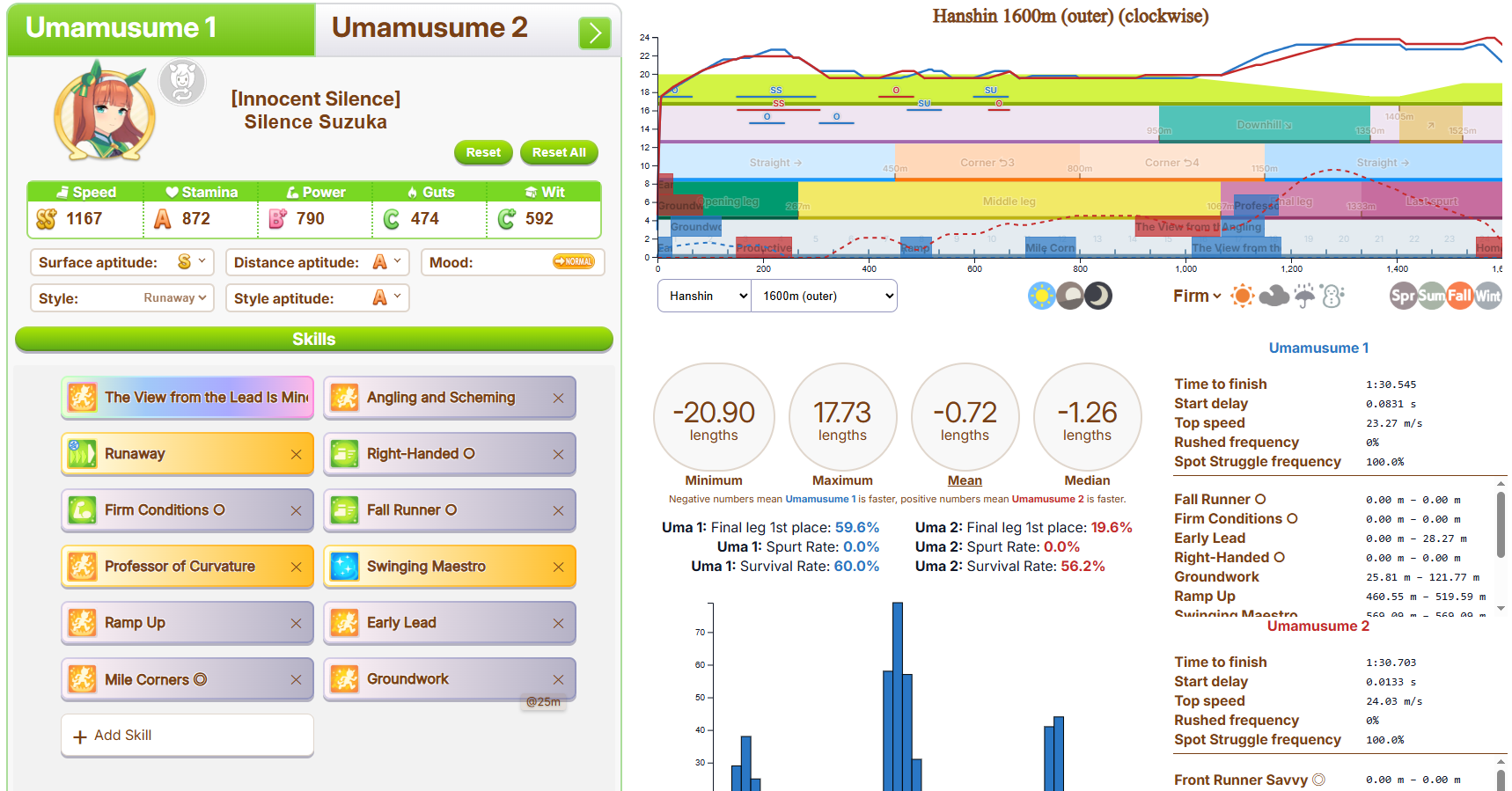 >>5910337 Потестил. Выигрывает. Причем четыре раза подряд ловила лейтстарт, а потом выбегала с 15+ места на первое, обгоняя всяких S Водок, Марузенски и Огури. Из десяти гонок выиграла 7, дважды соснула у моей же S Водки и только один раз слила чужой лошади.