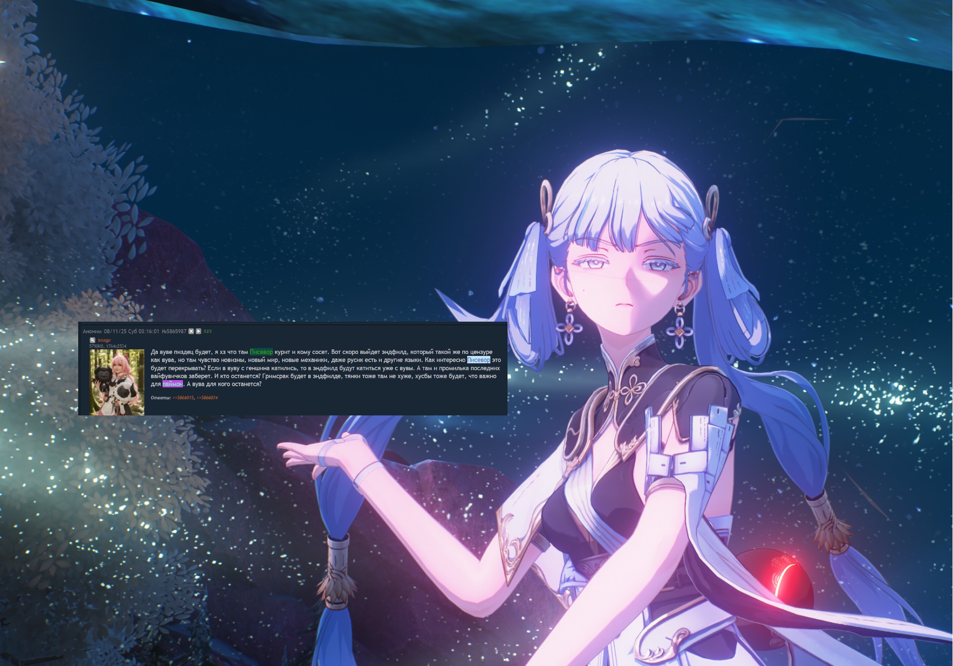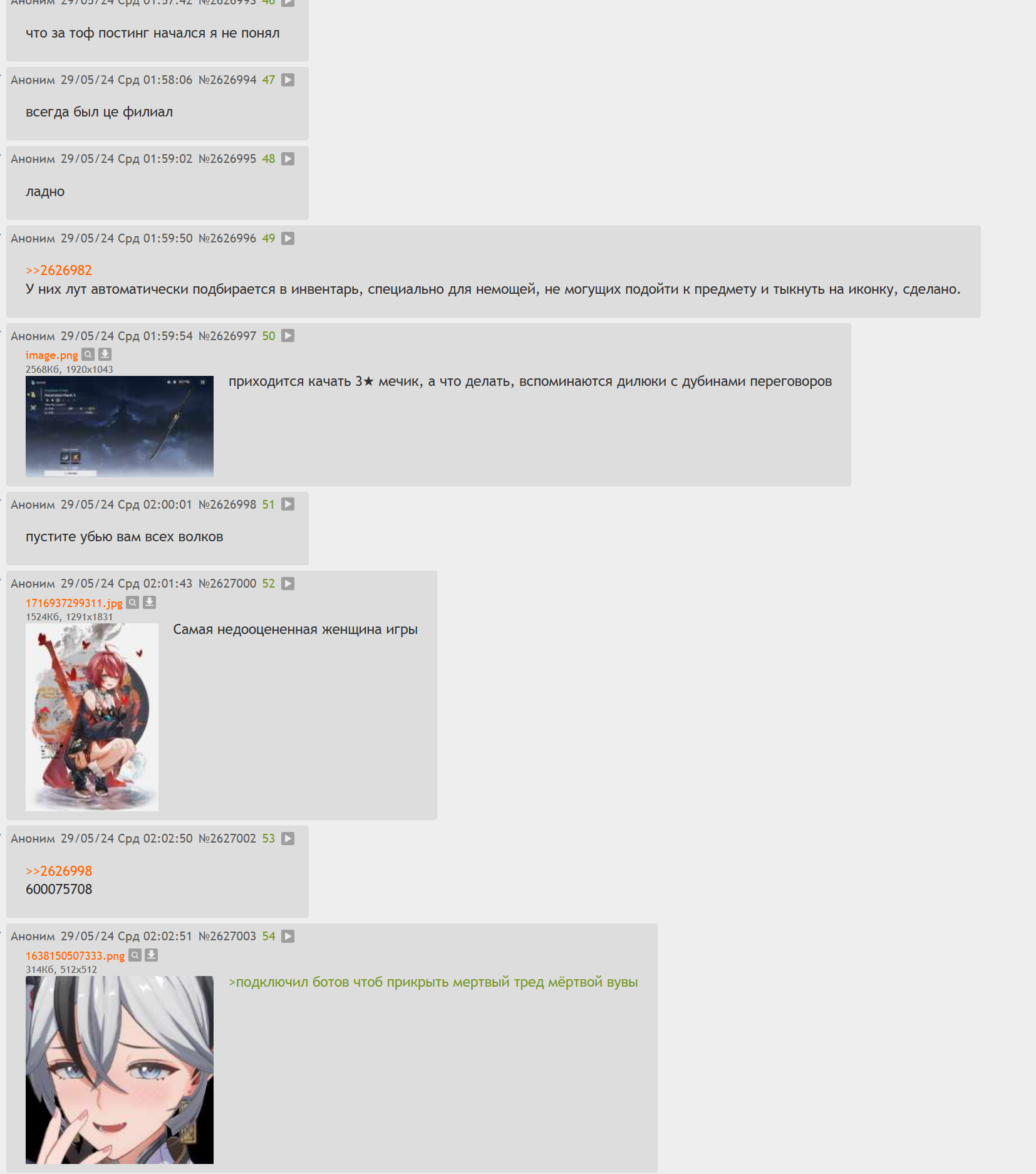 >>5881977 Я ваще хз че вува тред дак сдыхает. Мне неинтересно играть в гачу с мертвым комьюнити, это буквально 50% кайфа от гачи всегда был активный тред по ней.