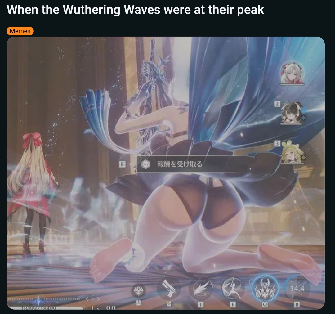 Хз как другие залетухи, но я как турист долго в Вуве не задерживаюсь. У игры вообще нет удерживающего эффекта для меня, как в других гачах с дейликами. Как заканчивается сюжетка, то отваливаюсь до следующей обновы с синемой и прихожу за ахуем на свежую голову. Для меня это как качественный сингл, но с регулярными обновами.