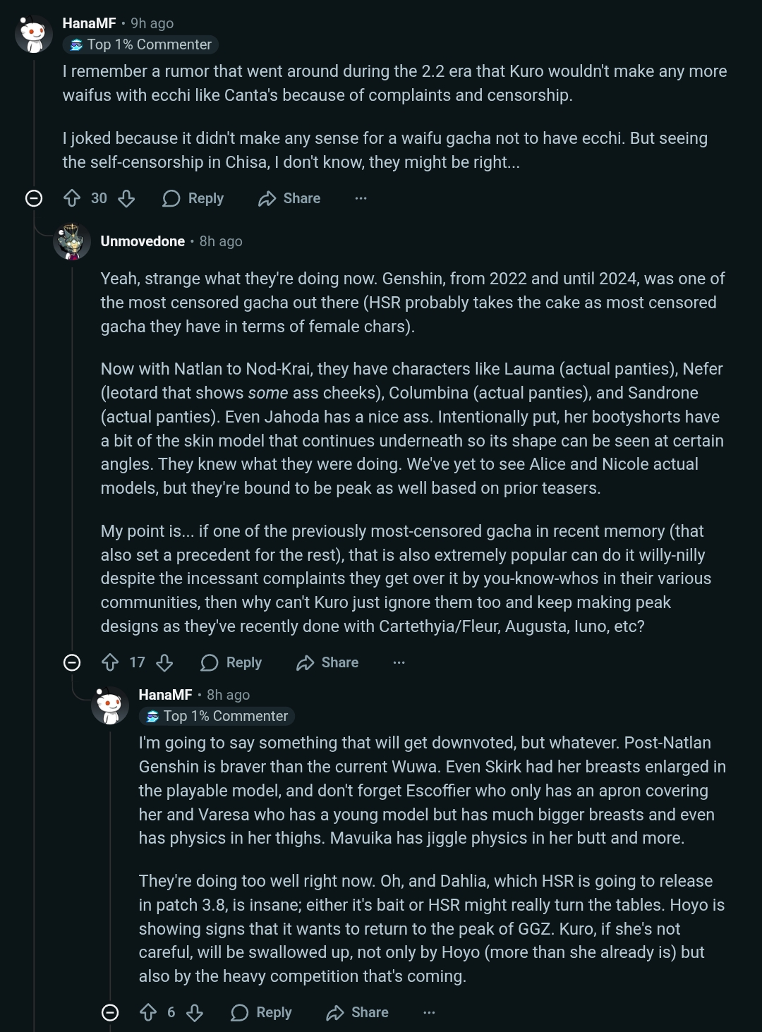 Заметил, что у меня интерес к любой гаче держится примерно год, и затем я захожу чисто по привычке (возможно от того, что уже много времени вложено и не хочется дропать). Есть сеймуры?
