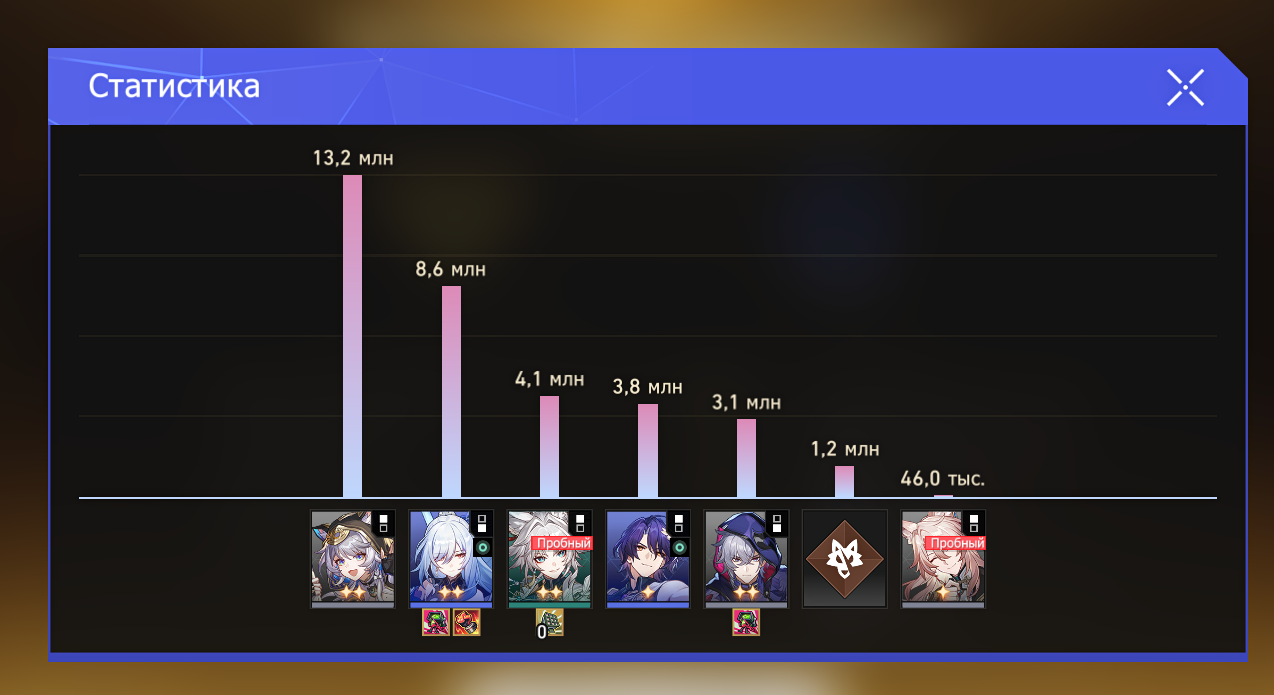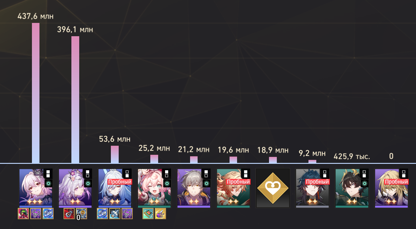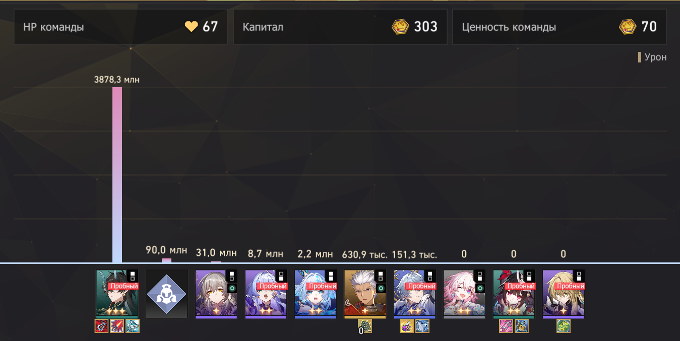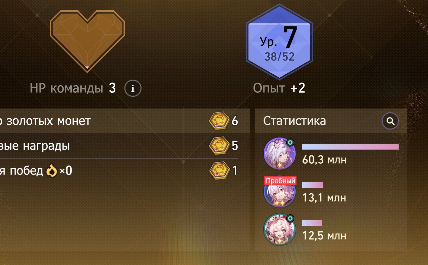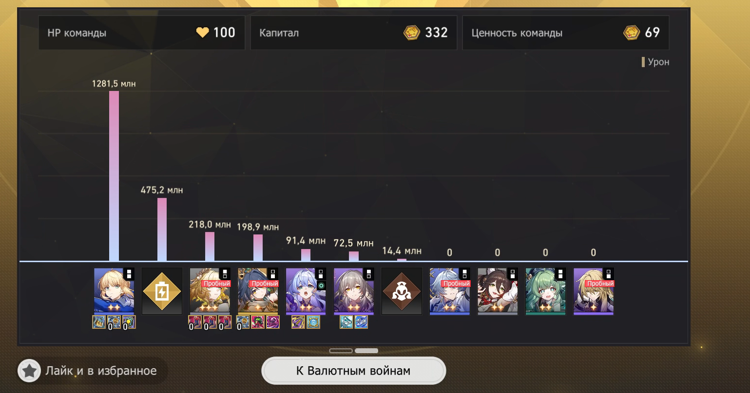 Брейк, ох, сложно описать отношение к нему, в начале это лютейший кал из-за того, что ебаная Раппа не дамажит нихуя, мне ещё выпал аффикс на короткие обычные битвы, она буквально 1 раз ходит, ей не хватает с её хода на ульту и бой заканчивается без единого её ульта. Проебал хп 50-60 из-за этого. Ещё и Фуга долго не приходила. Потом поймал Химеко 3стар. Короче, забейте хуй на нормальных брейк керри кроме Светки. Химеко 3 стар, ебёт просто пиздец, и она у меня в крит сборке под продвигу. Из-за чего скейл только игровой. Под 3е измерение хп пулы просто пиздец, едва успеваешь. Но после 2 стар светки со шмотками на ультимейты и с Волком. Это прям пушка, там каждый ульт по сотням миллионов уроны и даже миллиарды под настак всякого.