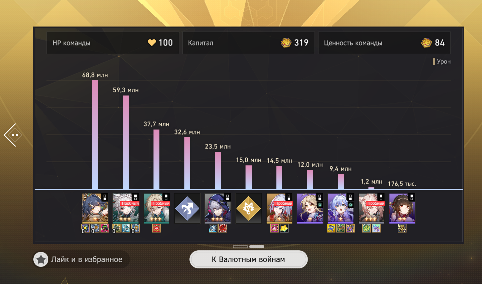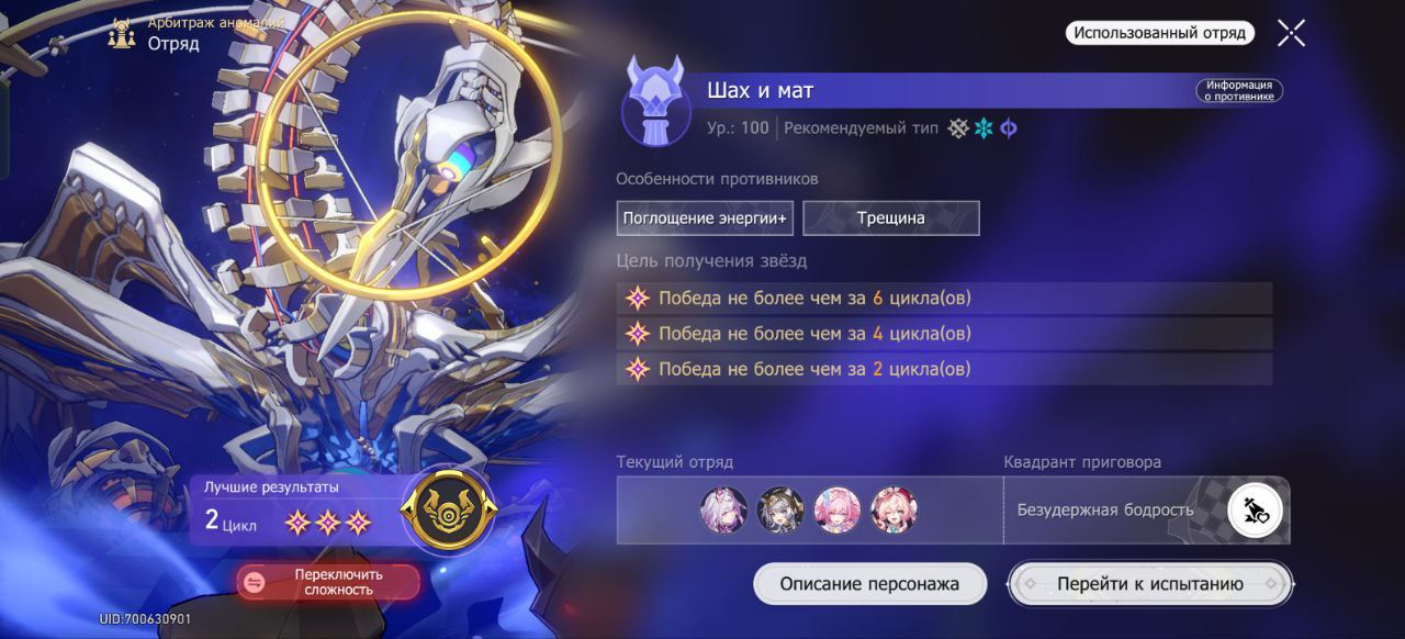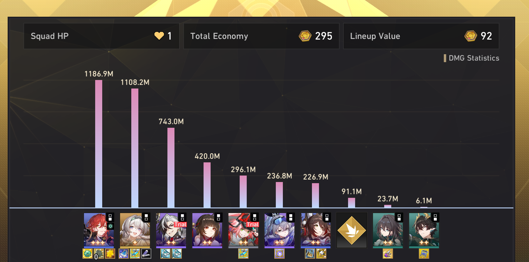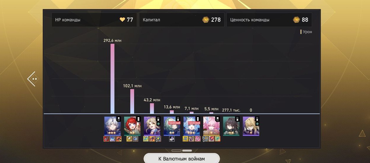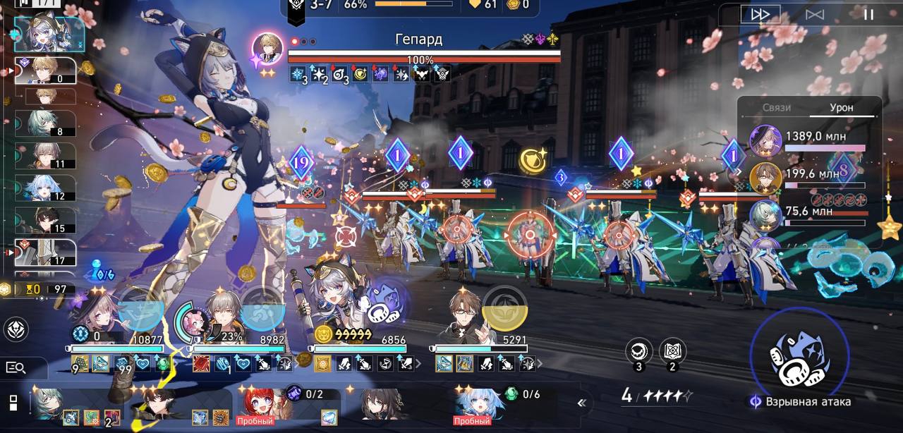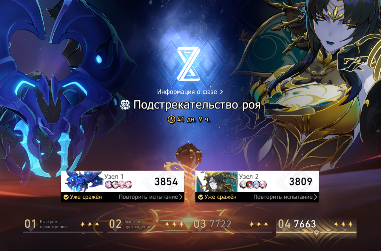 Брейк, ох, сложно описать отношение к нему, в начале это лютейший кал из-за того, что ебаная Раппа не дамажит нихуя, мне ещё выпал аффикс на короткие обычные битвы, она буквально 1 раз ходит, ей не хватает с её хода на ульту и бой заканчивается без единого её ульта. Проебал хп 50-60 из-за этого. Ещё и Фуга долго не приходила. Потом поймал Химеко 3стар. Короче, забейте хуй на нормальных брейк керри кроме Светки. Химеко 3 стар, ебёт просто пиздец, и она у меня в крит сборке под продвигу. Из-за чего скейл только игровой. Под 3е измерение хп пулы просто пиздец, едва успеваешь. Но после 2 стар светки со шмотками на ультимейты и с Волком. Это прям пушка, там каждый ульт по сотням миллионов уроны и даже миллиарды под настак всякого.