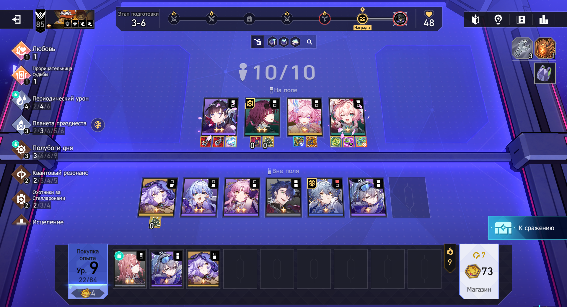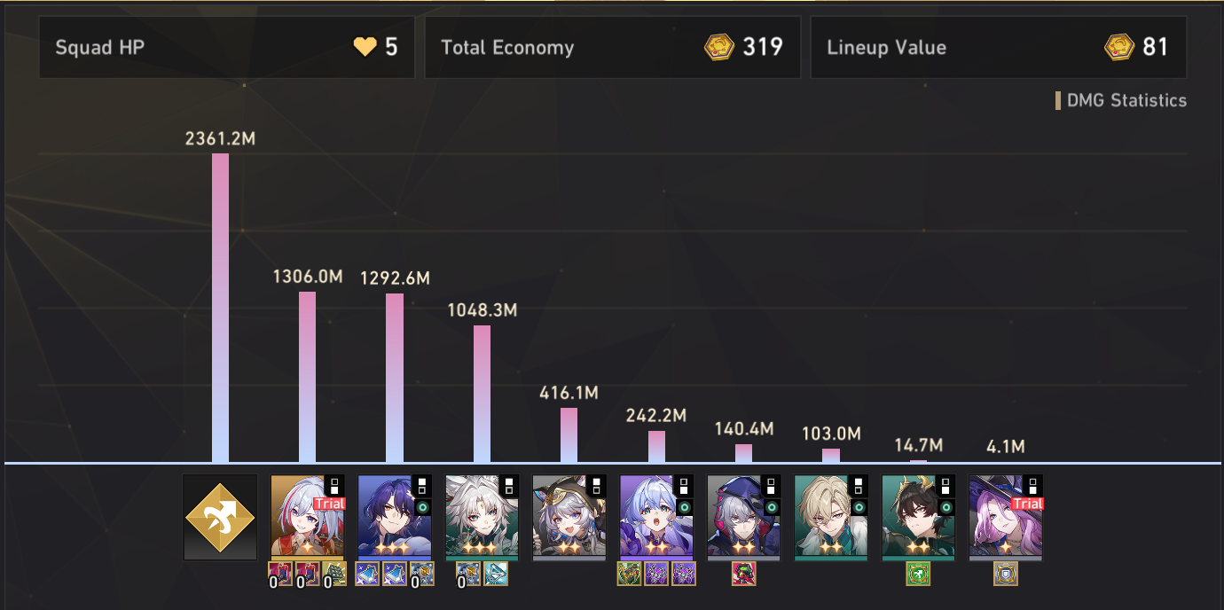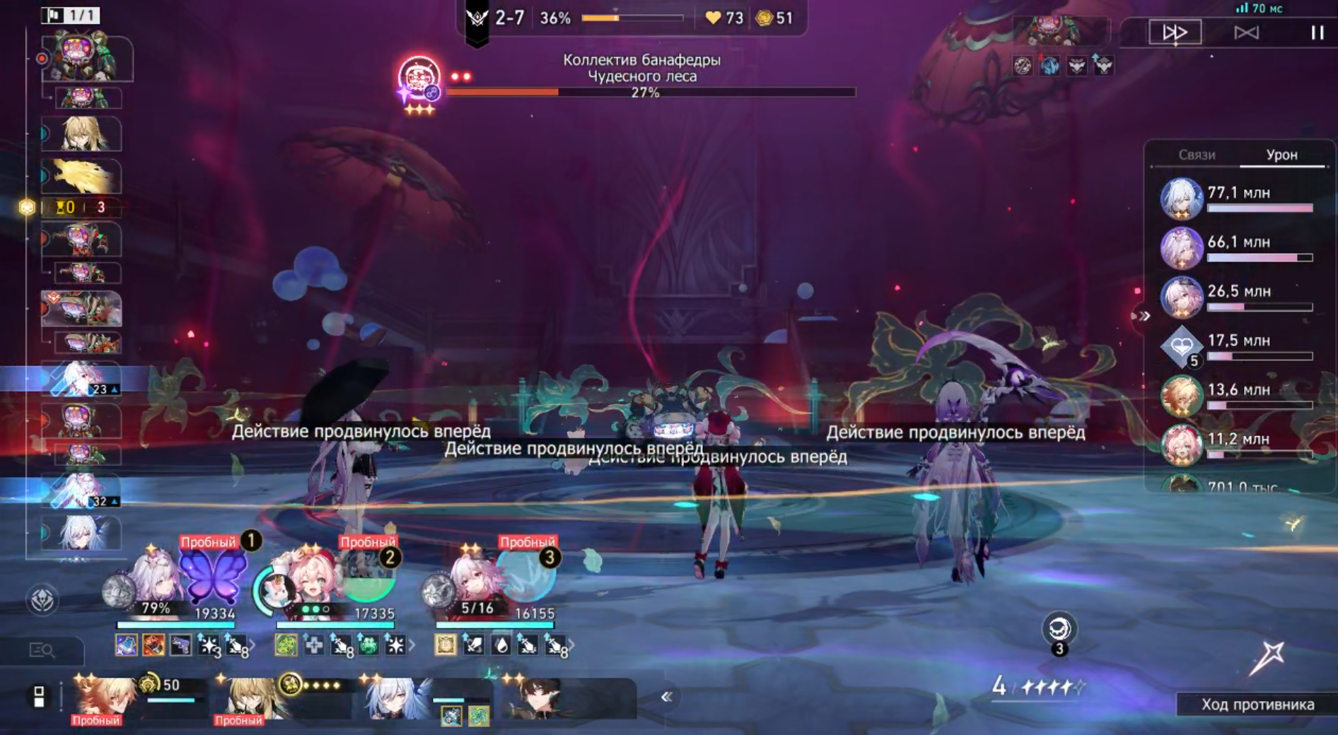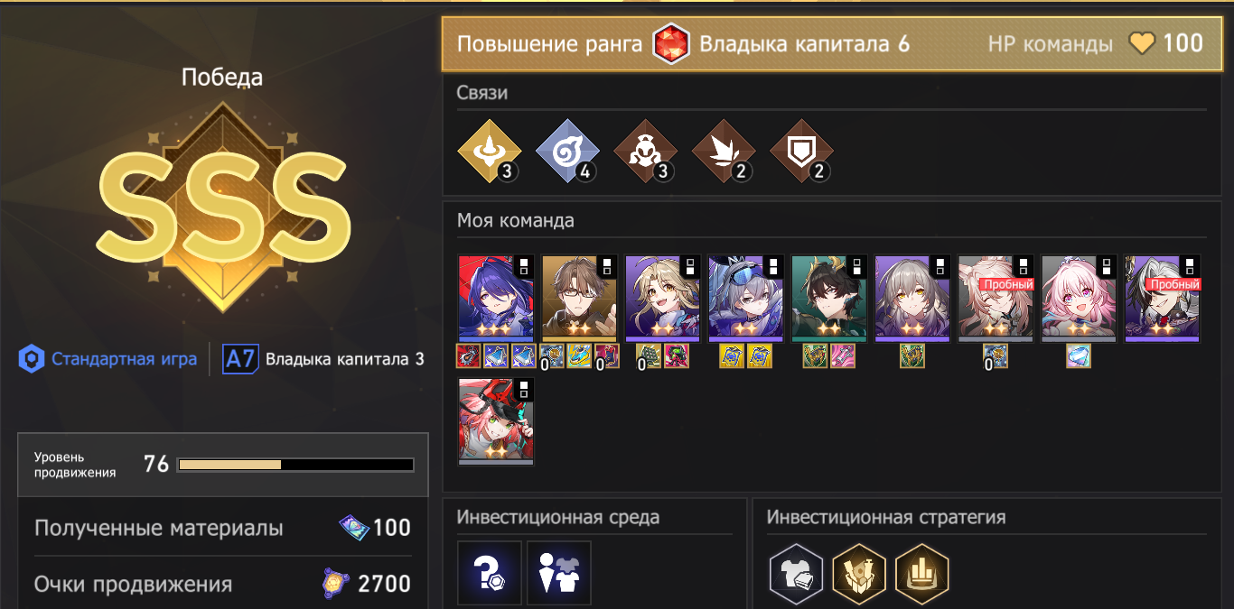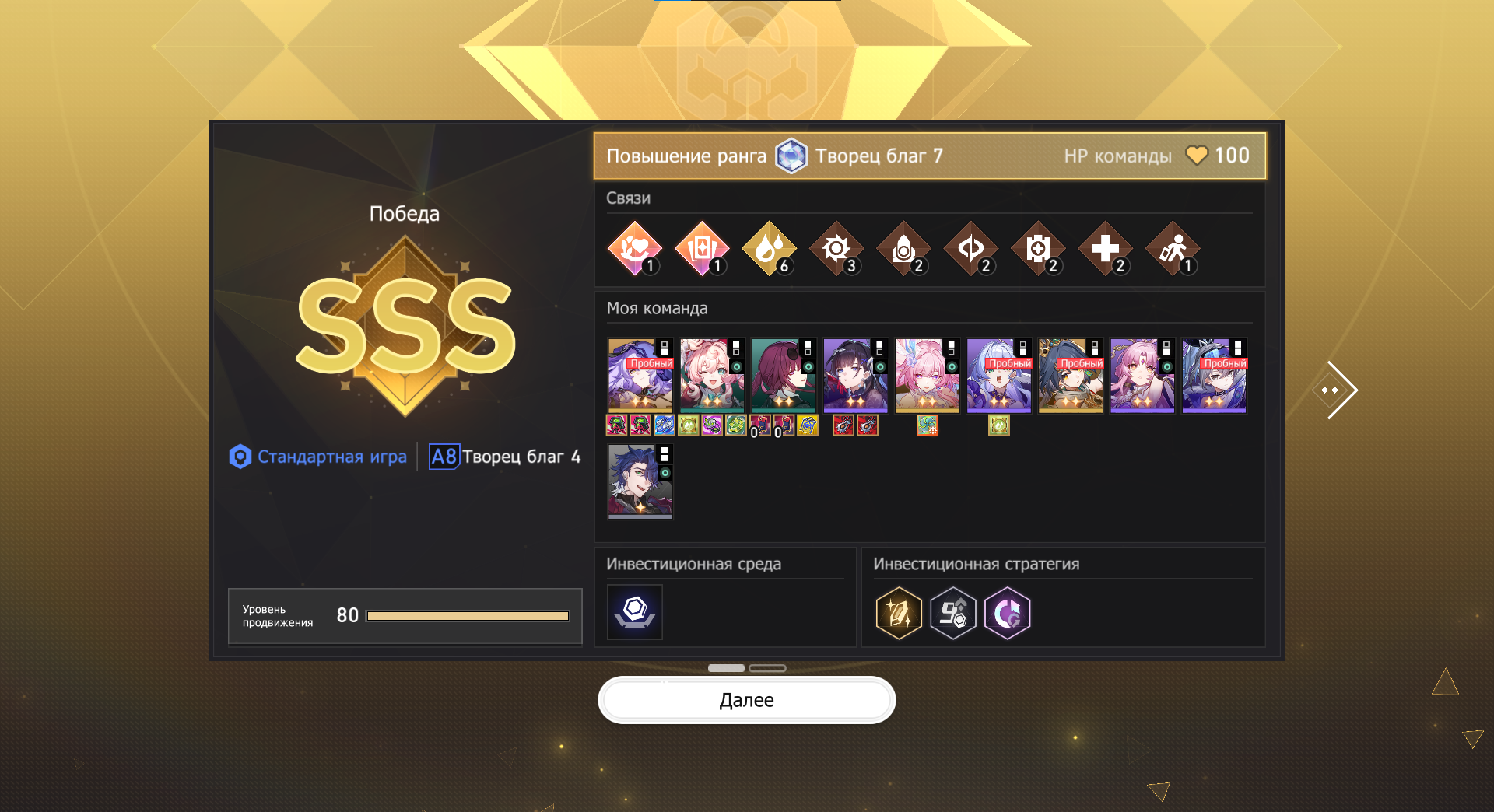 Брейк, ох, сложно описать отношение к нему, в начале это лютейший кал из-за того, что ебаная Раппа не дамажит нихуя, мне ещё выпал аффикс на короткие обычные битвы, она буквально 1 раз ходит, ей не хватает с её хода на ульту и бой заканчивается без единого её ульта. Проебал хп 50-60 из-за этого. Ещё и Фуга долго не приходила. Потом поймал Химеко 3стар. Короче, забейте хуй на нормальных брейк керри кроме Светки. Химеко 3 стар, ебёт просто пиздец, и она у меня в крит сборке под продвигу. Из-за чего скейл только игровой. Под 3е измерение хп пулы просто пиздец, едва успеваешь. Но после 2 стар светки со шмотками на ультимейты и с Волком. Это прям пушка, там каждый ульт по сотням миллионов уроны и даже миллиарды под настак всякого.