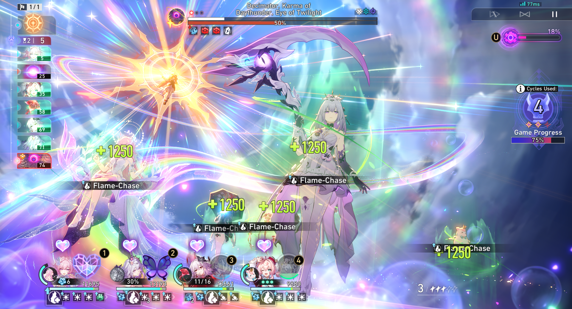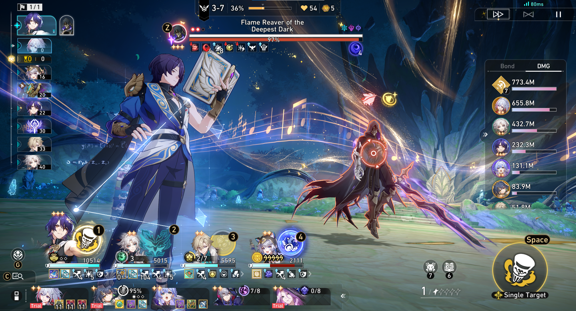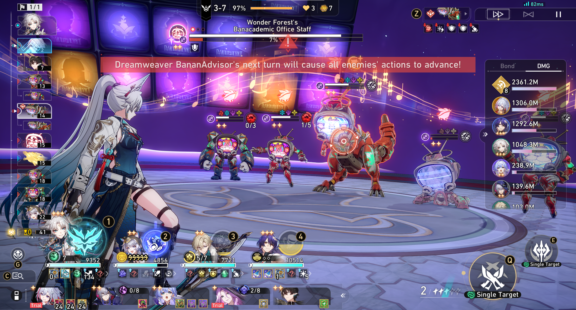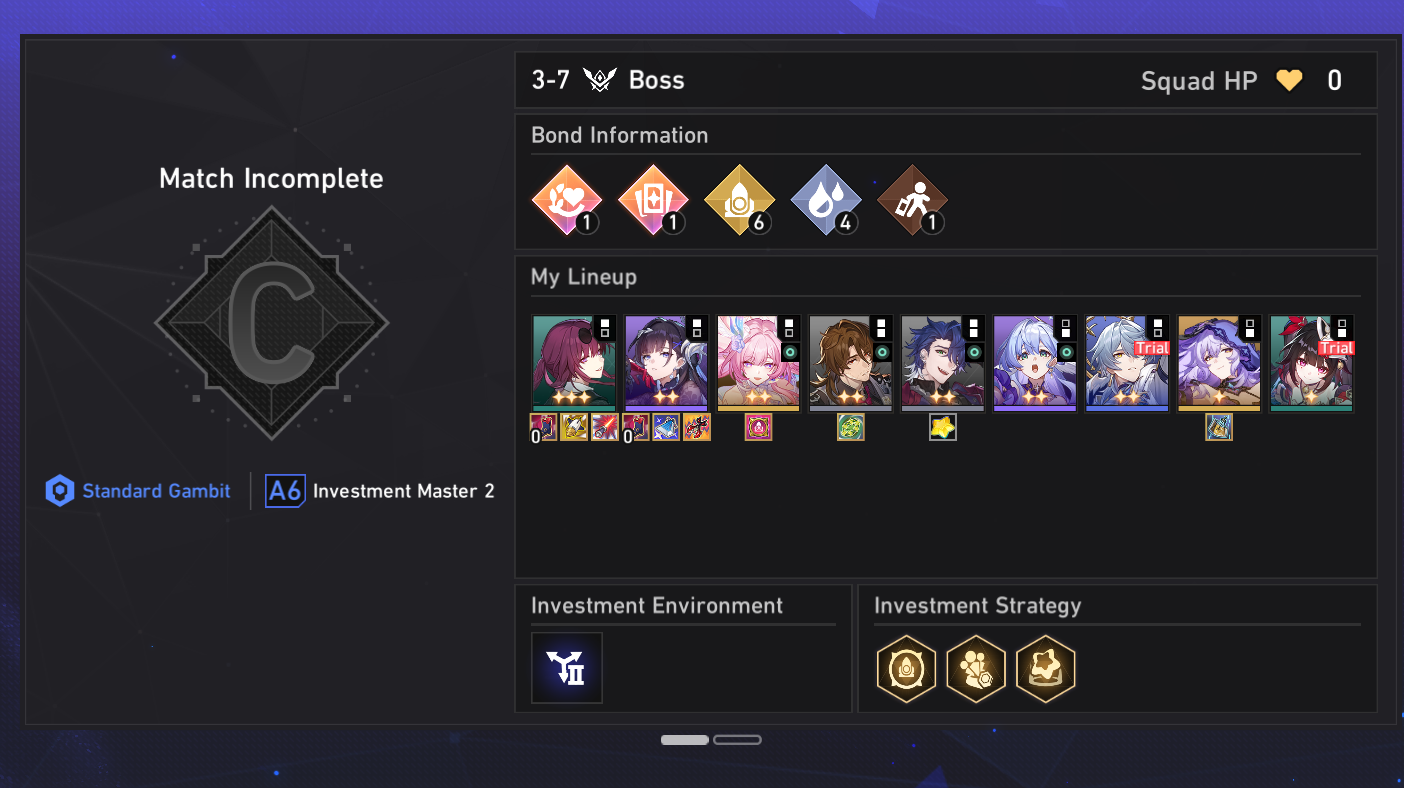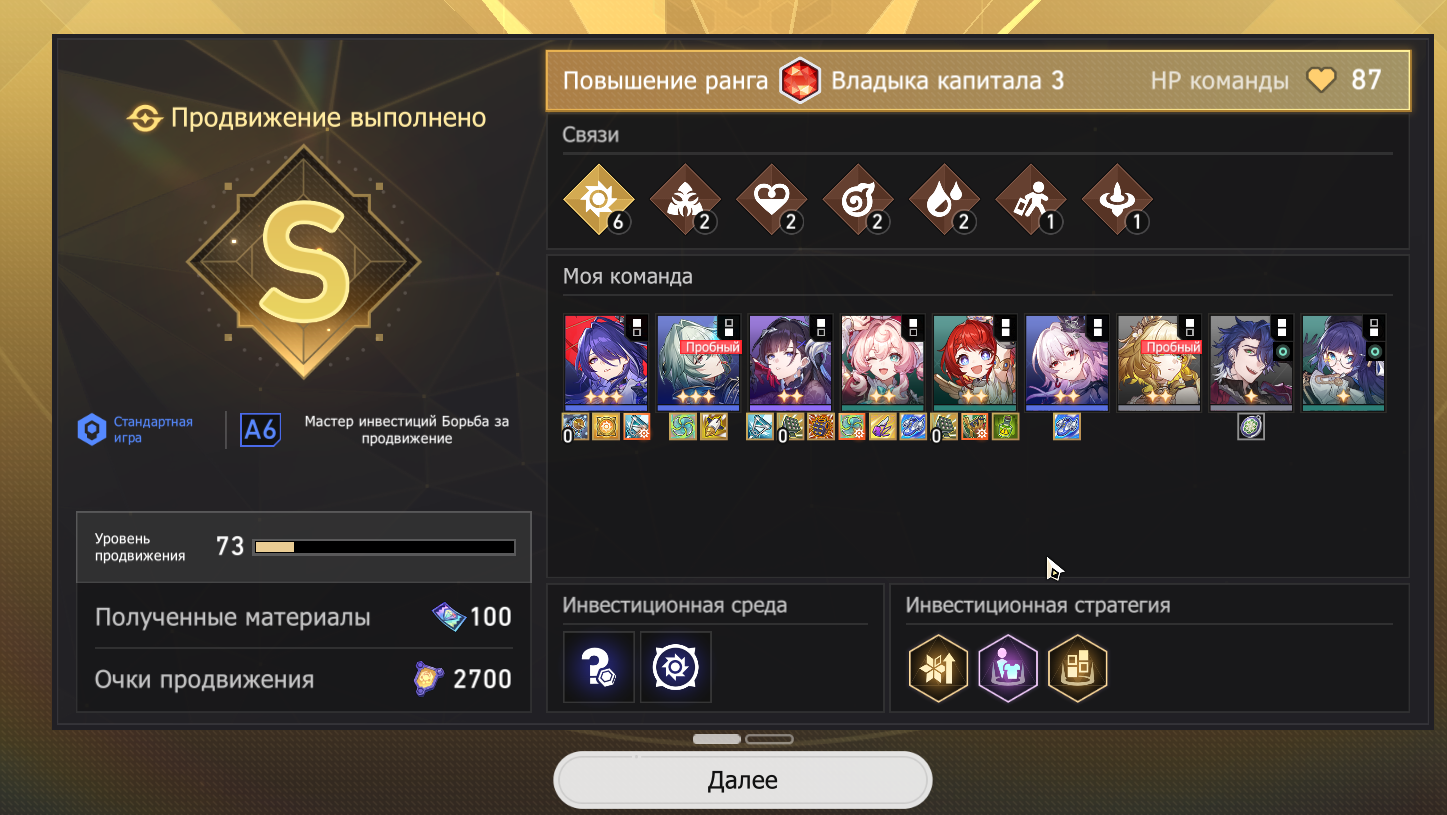 Брейк, ох, сложно описать отношение к нему, в начале это лютейший кал из-за того, что ебаная Раппа не дамажит нихуя, мне ещё выпал аффикс на короткие обычные битвы, она буквально 1 раз ходит, ей не хватает с её хода на ульту и бой заканчивается без единого её ульта. Проебал хп 50-60 из-за этого. Ещё и Фуга долго не приходила. Потом поймал Химеко 3стар. Короче, забейте хуй на нормальных брейк керри кроме Светки. Химеко 3 стар, ебёт просто пиздец, и она у меня в крит сборке под продвигу. Из-за чего скейл только игровой. Под 3е измерение хп пулы просто пиздец, едва успеваешь. Но после 2 стар светки со шмотками на ультимейты и с Волком. Это прям пушка, там каждый ульт по сотням миллионов уроны и даже миллиарды под настак всякого.