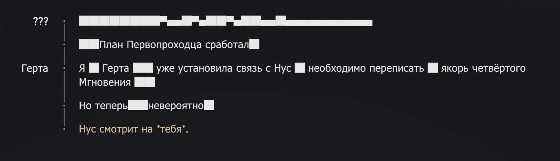 >>5879715 Абсолютно все диалоги унитазика в этой зоне можно скипать, тонна воды вылита чтобы просто сказать что она запрется во временной петельке и вся история амфореуса это временной парадокс.
