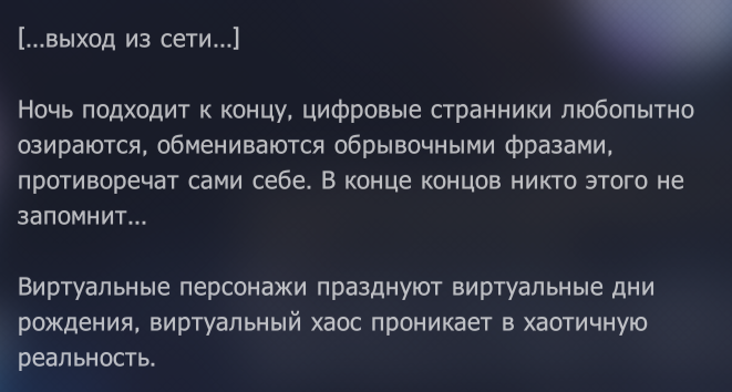 А тут пол патча - прощай, первопроходец, мувик а что если бы они были живы, сидят бля у костра и последние наставления записывают в книгу, а потом бамс - йо бро а мы теперь в магической книге живем, можешь заходить к нам в любое время ууиии - это же просто самое дешевое говнописательство, которое когда либо видел свет. Шаоджи это истинный анти-творец.