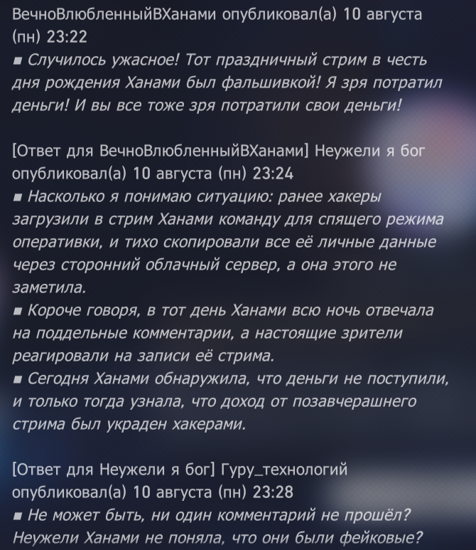 А помните какой охуенный сюжет был в патчах 2.4.-2.5 не было всякой "НИФСЕ ПАЙМУТ" залупы про пещеры, не было всякого бессмысленного пиздореза, не было всяких снов собаки, не было ебаной продажи оцифрованной жены сценариста, только чистая космоопера, буквально таким должен быть сюжет хср. Но разрабы почему-то до сих пор делают ставку не на тех стажеров что сделали ту арку, а на ебаного бездаря, куколда и графомана калоджи. Почему так? Даже в геншине сейчас сюжет интересней, неужели ляо разлюбил хонкал?