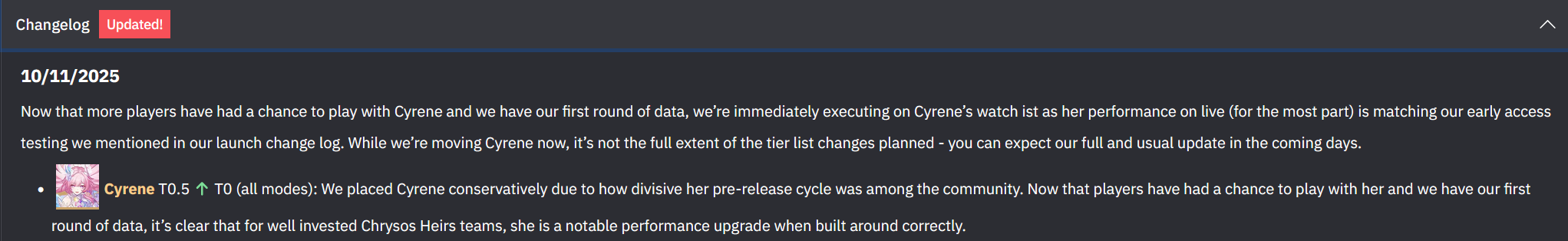 Заметили, что Ахерон стала меньше походить на аниверсери чемпика? Скип батла дали фуфлону, и все, не осталось никакой уникальности. У касторки глобалка есть, даже Кирена больше на аниверсери тянет, за счет уникальных вайд забафов. С Яэ им уже придется поднапрячься, чтобы она на фоне других сияла.