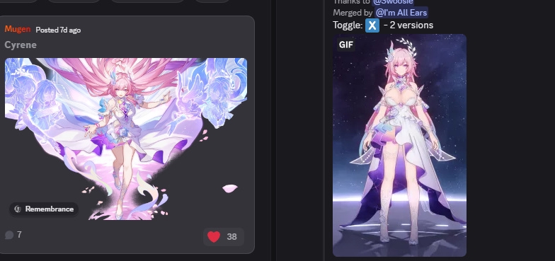 Чья пнгшка лучше для акка Гиацины или Кирены? Мне кажется что первая. Герои через дрочку хп 100% еще будут выходить, да и Блейд всегда может с проеба флипа успасть. А вот киреновская выглядит сомнительно не на Кирене, а сама Кирена выглядит сомнительно в пачках без златиусов. Чендж май майнд.