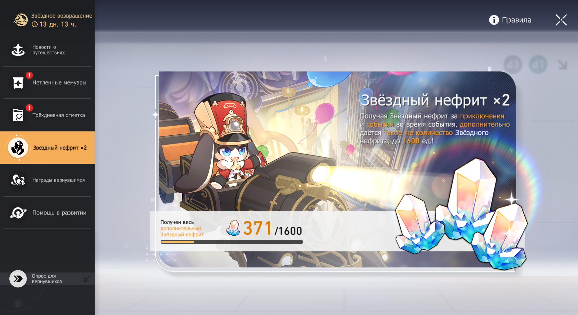 Ну все, теперь в баннере аж 40 круток. Хороший патч. Сначала сделал 15+ круток в Гиацину, потом 1 в Кирену, далее 35 в Гиацину и вытащил е6 Кларе, а теперь уже 40 круток накидалось. И это только на подпиське! Прям годовщина какая!