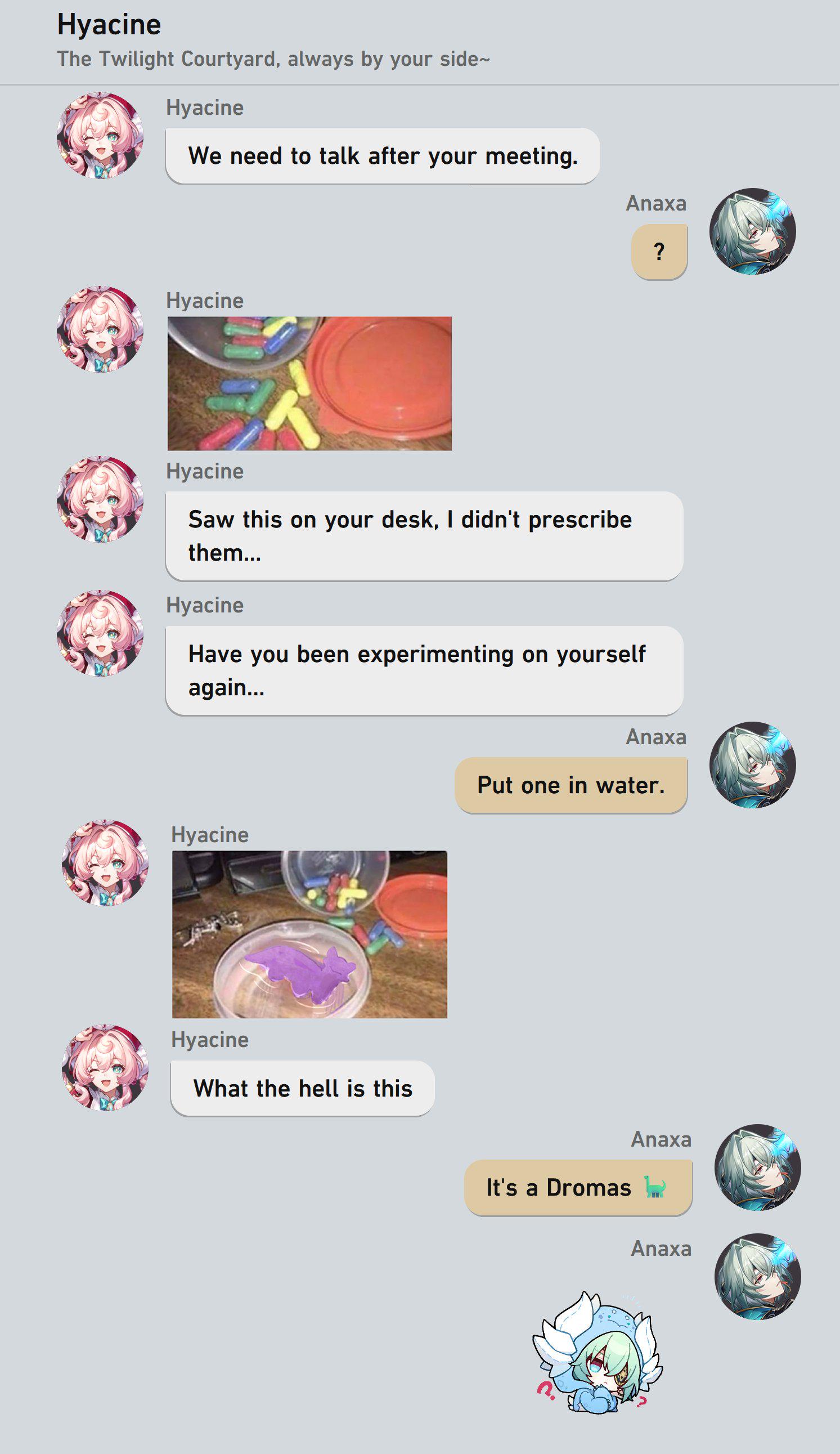 >>5879575 Мне нравится как её древний возраст и старомодность/чужеродность охеме с интернетом подчеркнули тем что она общается голосовыми сообщениями. С броней и её цветочными стикерами аналогично.