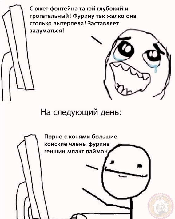 >>5877035 Есть хуже, ты весёлый пепа-сойжак, нашел в интернете весёлую игру на телефончик хонкай стар рейл, гуглишь в интернетике и тебе выпадают непонятные буквы ораньжевого сайта. Внезапно оказывается, что существует некая "база" и крутить сосисок это зашквар, у нас же тут АУЕ тред. В спешке забываешь про своего е2 бибитора лунае и бегишь роняя кал крутить вайфов, с лицом грустной пепы смотришь на унылый автобой, сворачиваешся, постепенно забываешь о игре, правая кнопка мышки "удалить".