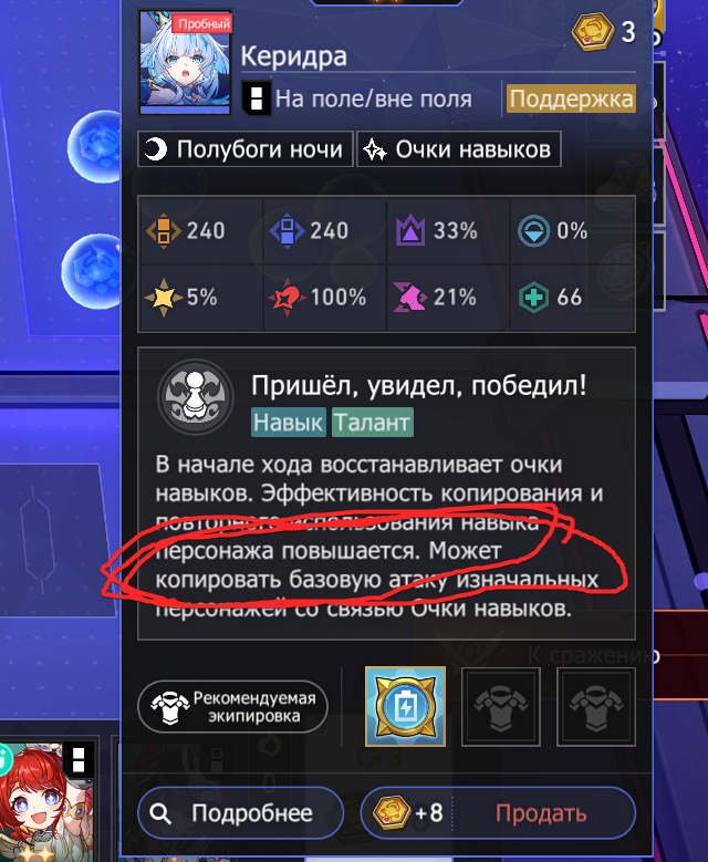 >>5876210 Гиацины, если вложился в хпкал и пулил март или Касторию с эйдолонами, в остальных случаях ничего. В 4.0 с зеркалом будет то же самое, что с брейком. Я сам вытащил вчера на шальной лудке сигну Кирене и очень жалею, жаль нельзя их распылить и вернуть хотя бы 30 процентов затраченных пулов. На акке нет гиацины и теперь у меня е0с1 Кастория и Кирена. Розовую забрал шальным тенроллом, поставил к е1 Гиселенсе и не увидел особого импакта по сравнению с базянкой е0. Вчера только собрал ее в 200 скорости с конусом герты и зачем то после этого закинул тенролл в оружейку и сбил гарант. Теперь у нее 206 скорости, но ульту в 0 цикле в команде с дотами она не собирает, ещё и сигна в дот пачке не работает не полностью. Короче распильный т5 чемпик.