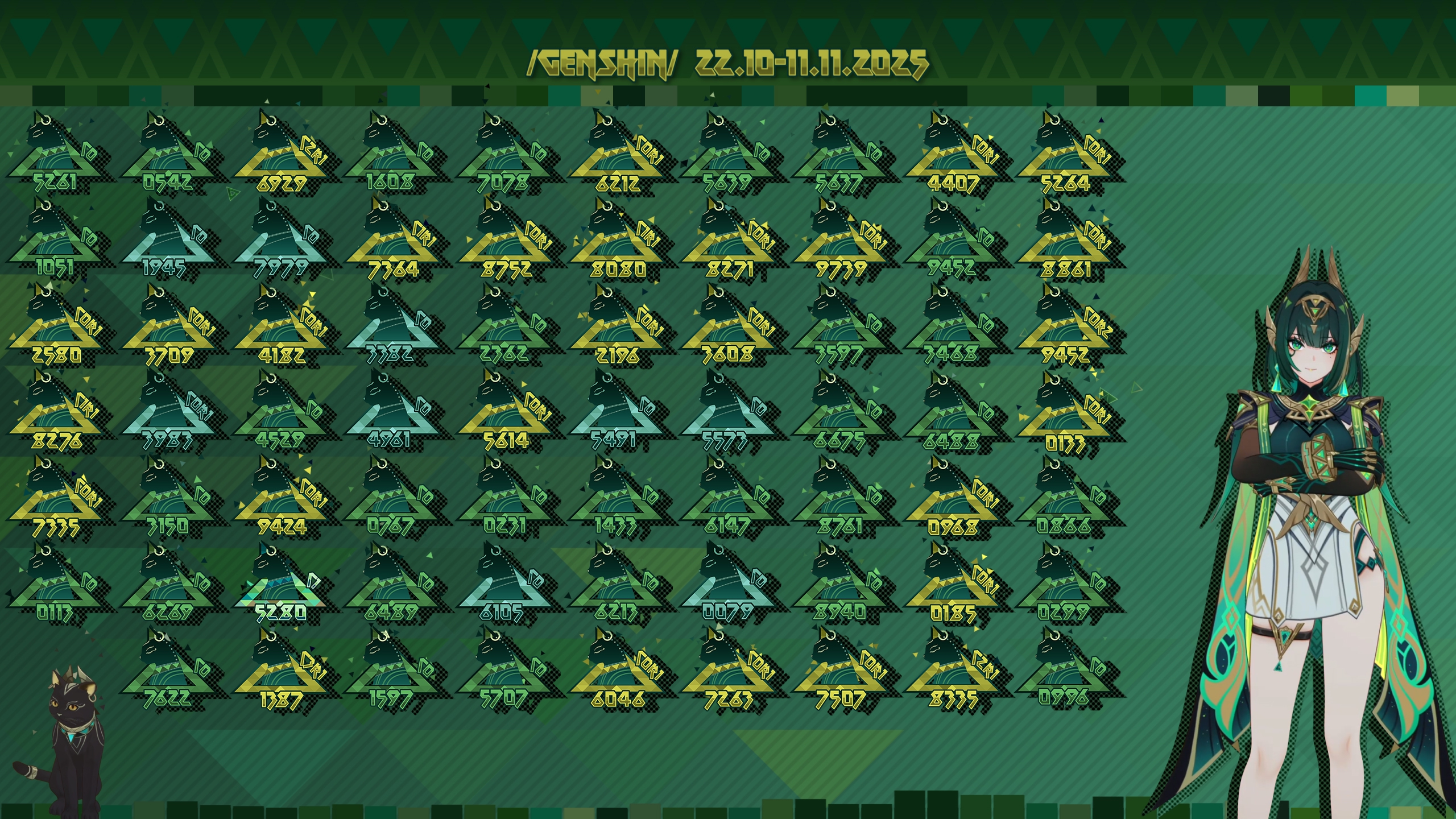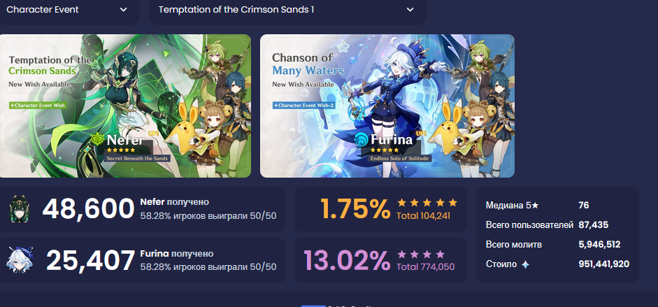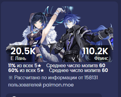✦ Гача-калькулятор https://hutaobot.moe/tools/gachacalc ✦ Показать персонажей картинкой https://akasha.cv/ ∙ https://enka.network/