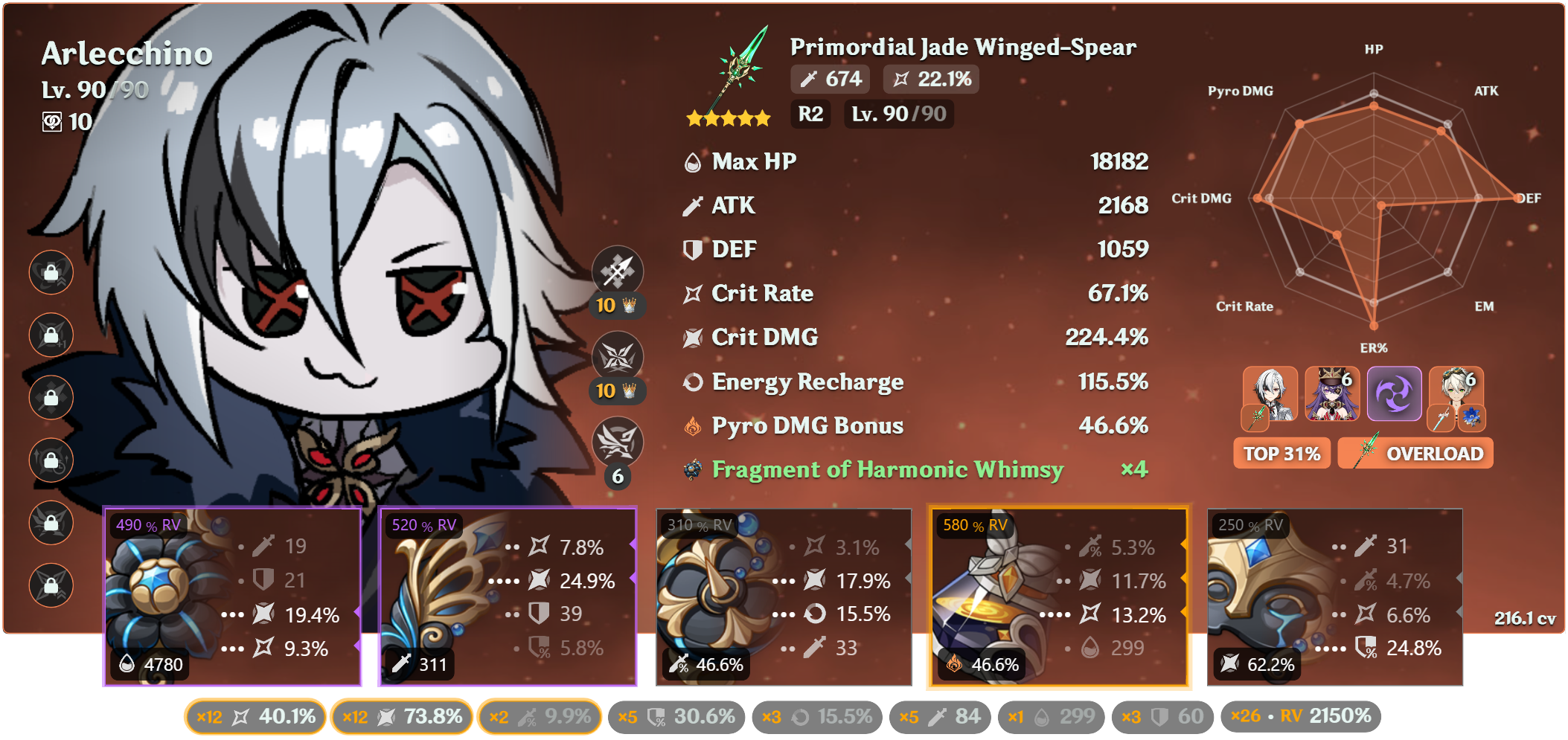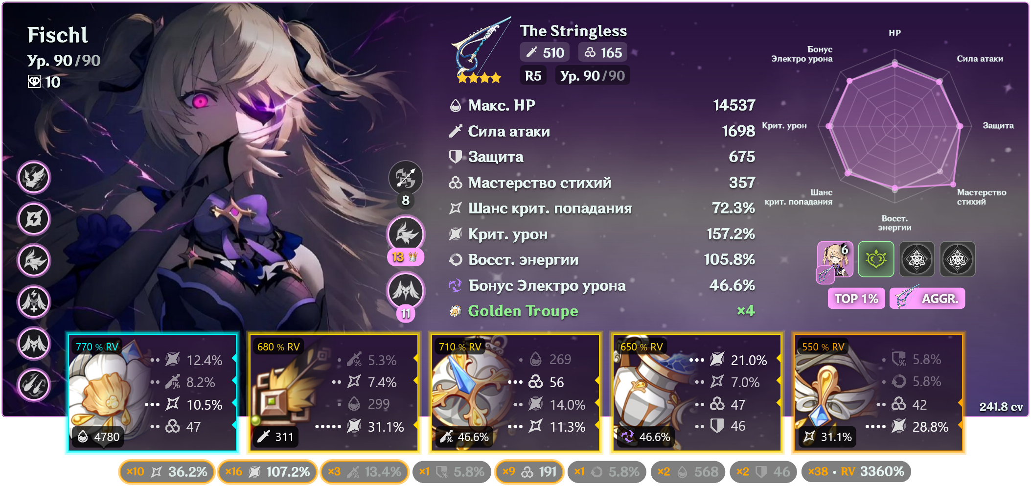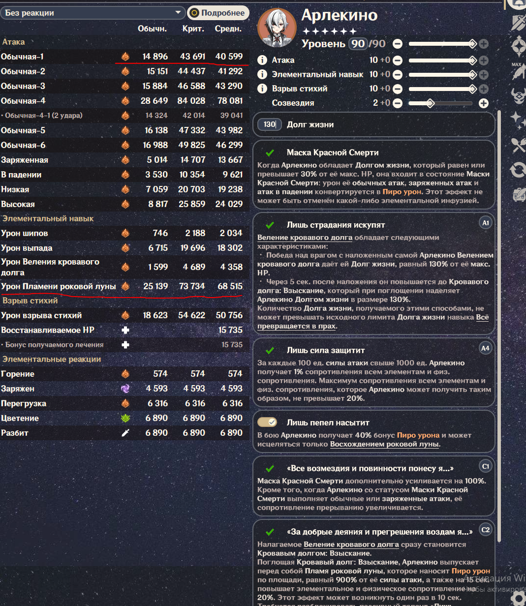Как зайдешь в комментарии под любыми видосом на ютубе - там у всех с0 арлекино бьет автоатаками по 60-90к, у меня с2 арлекино с сигной бьет по 20-25к (артефакты тоже близки к идеальным - все роллы в криты, атк и мастерство), с3 райден с коршуном бьет по 80к ультой и 12-15к атаками с ульты, невиллет тоже по цифрам в 3-4 раза ниже тех, что вижу в видосах на ютубе.