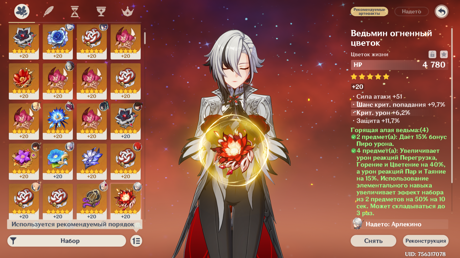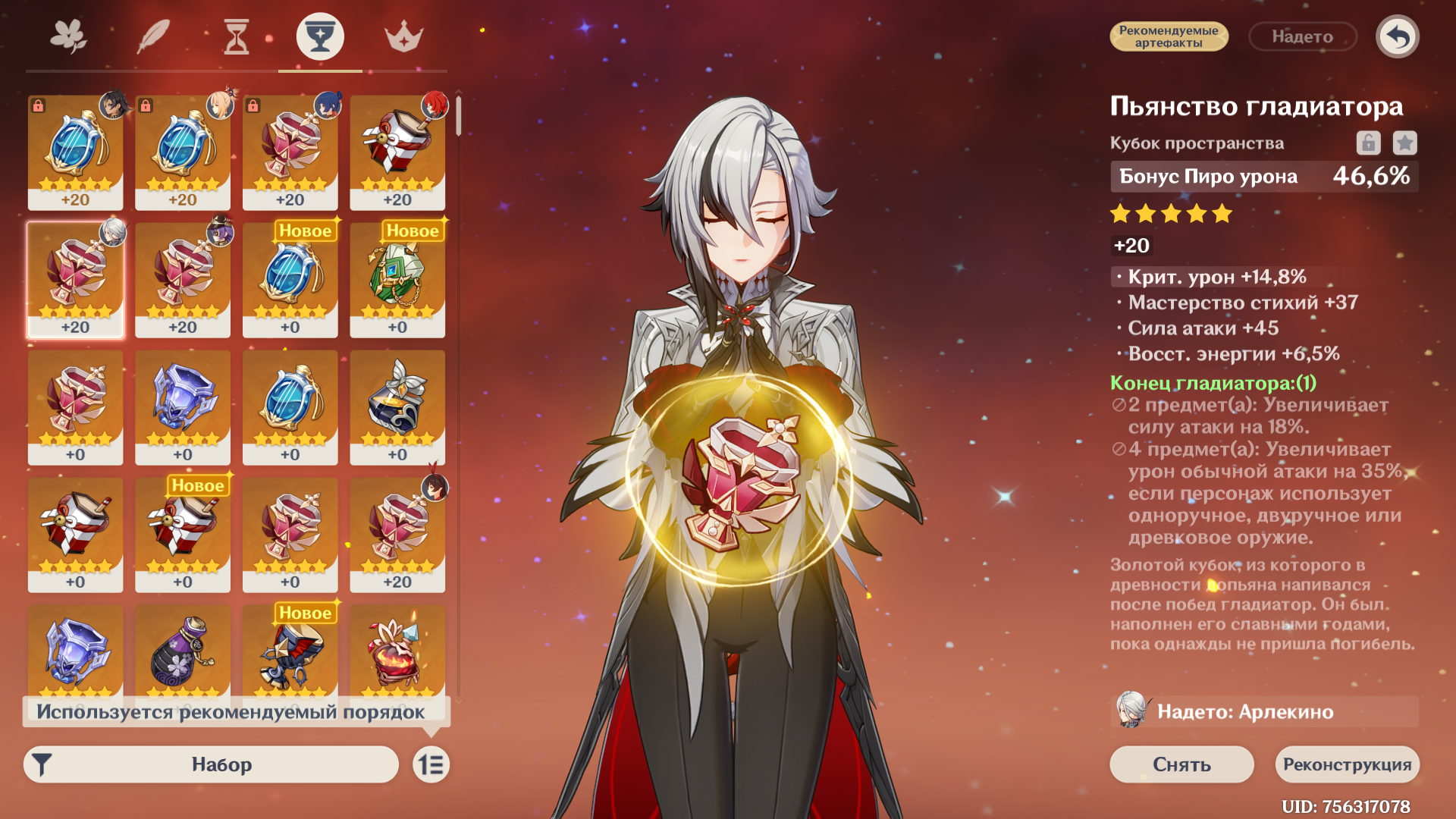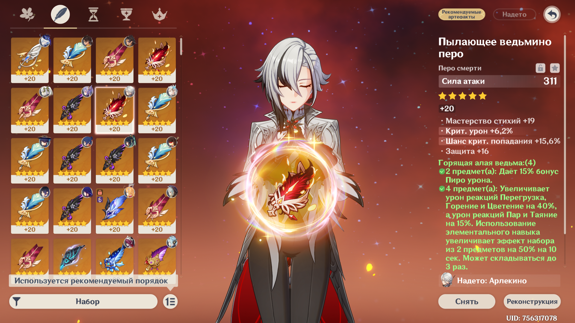 >>5883194 >>5883202 Ну да, буду ради тралленга прокачивать фул сет артефактов до 20. Я читал, что на арлекино лучше ставить гладиатор (и сигнатурный, но его я вообще не фармил, нет ни одного куска), но 15% пиро вроде звучит лучше +урон от реакций дает, я ещё перед её выходом в фонтейне 2 месяца фармил ведьму, и вот отдал ей лучшие куски.