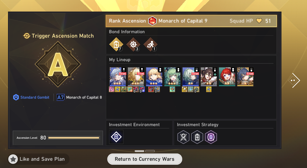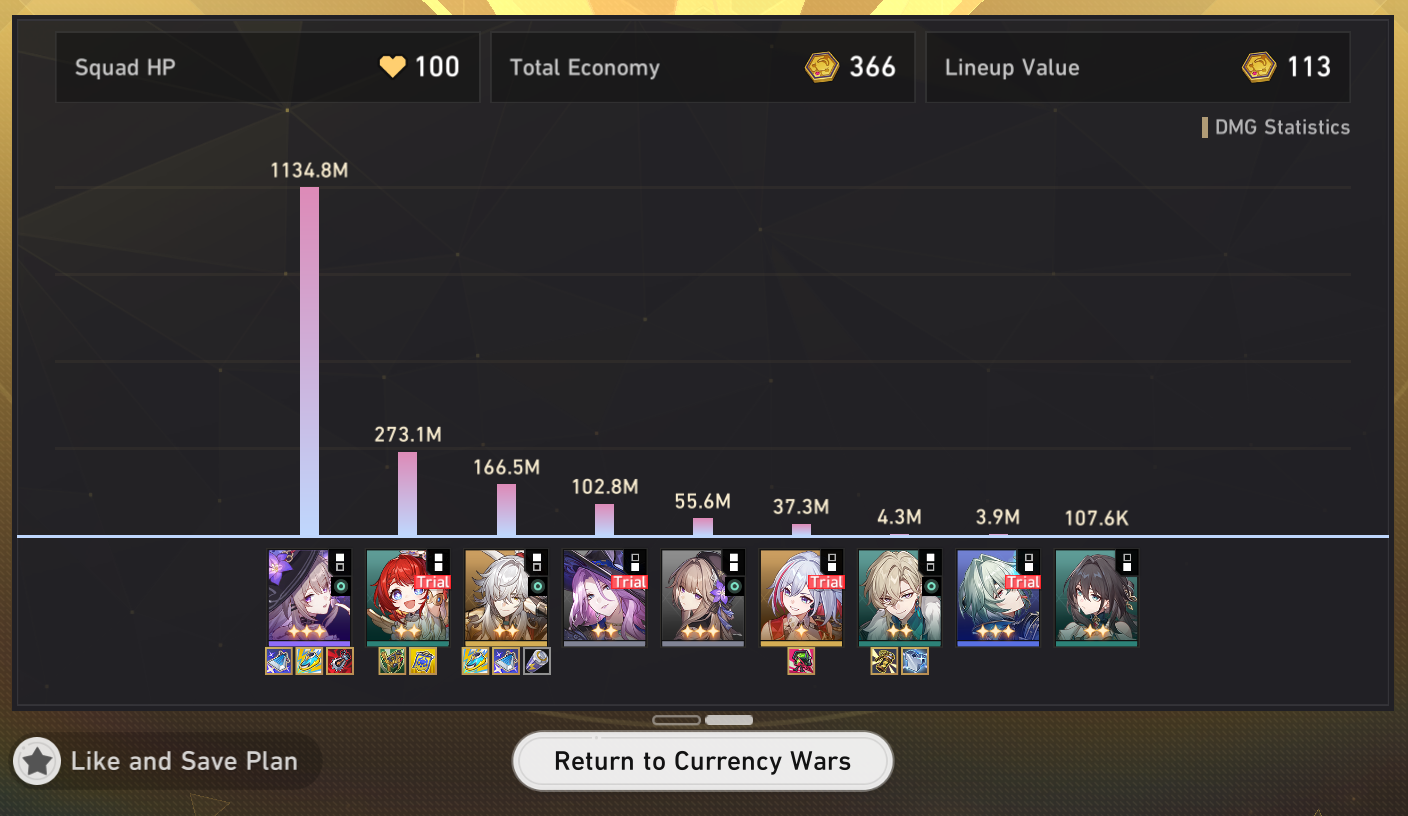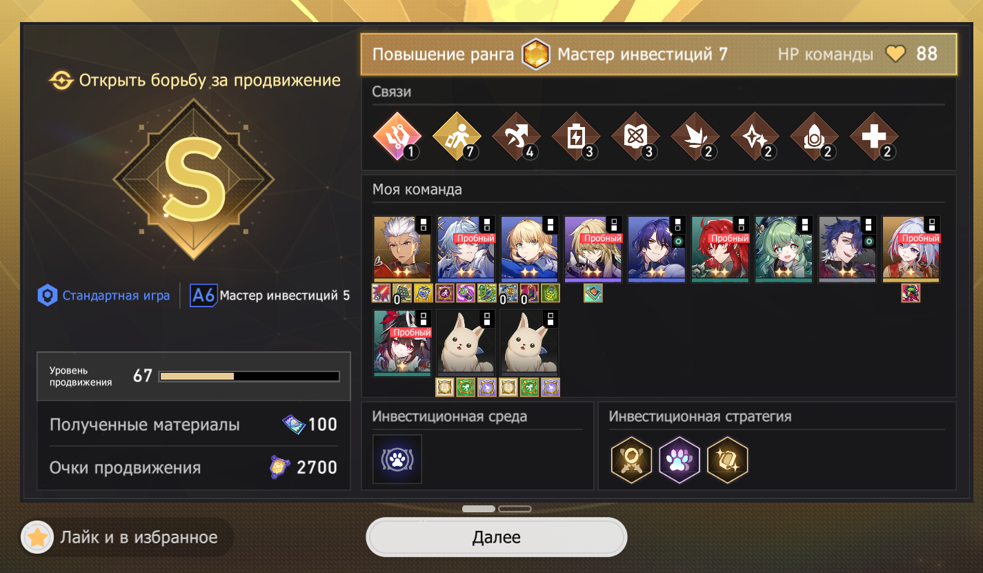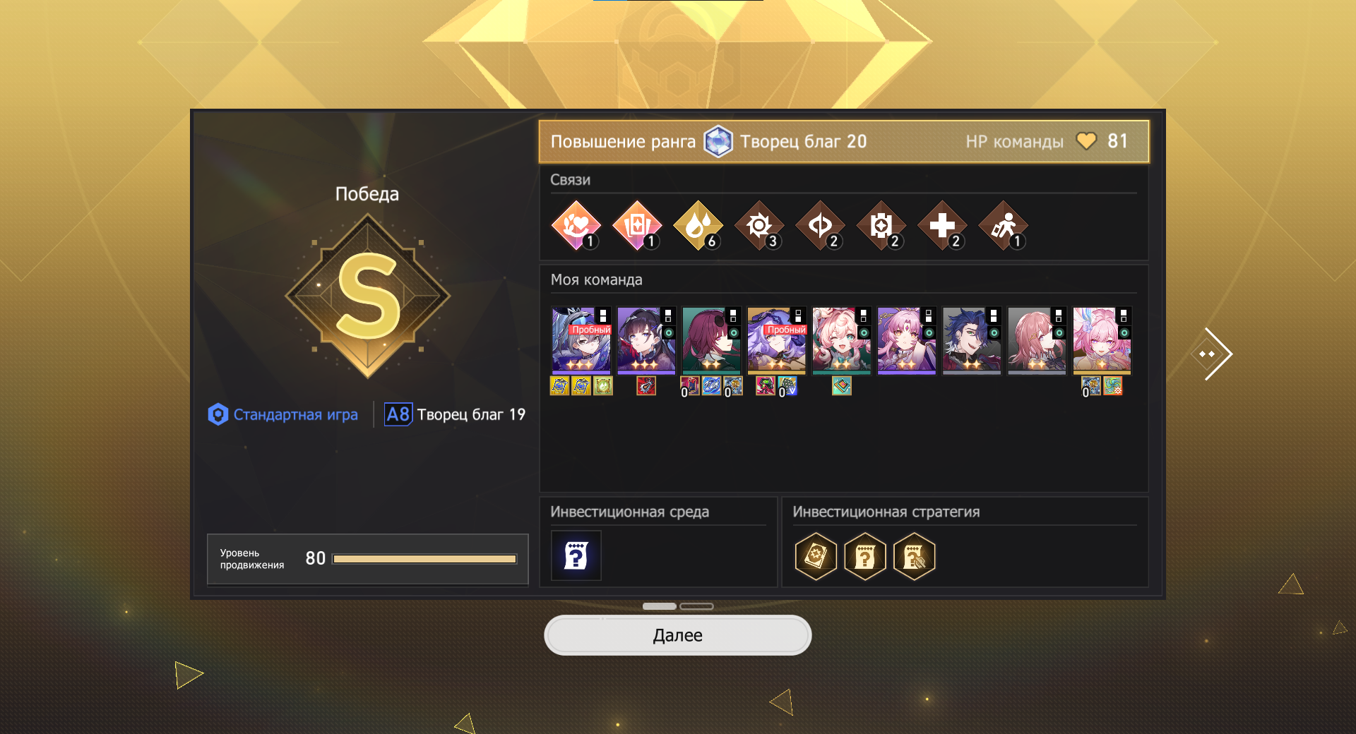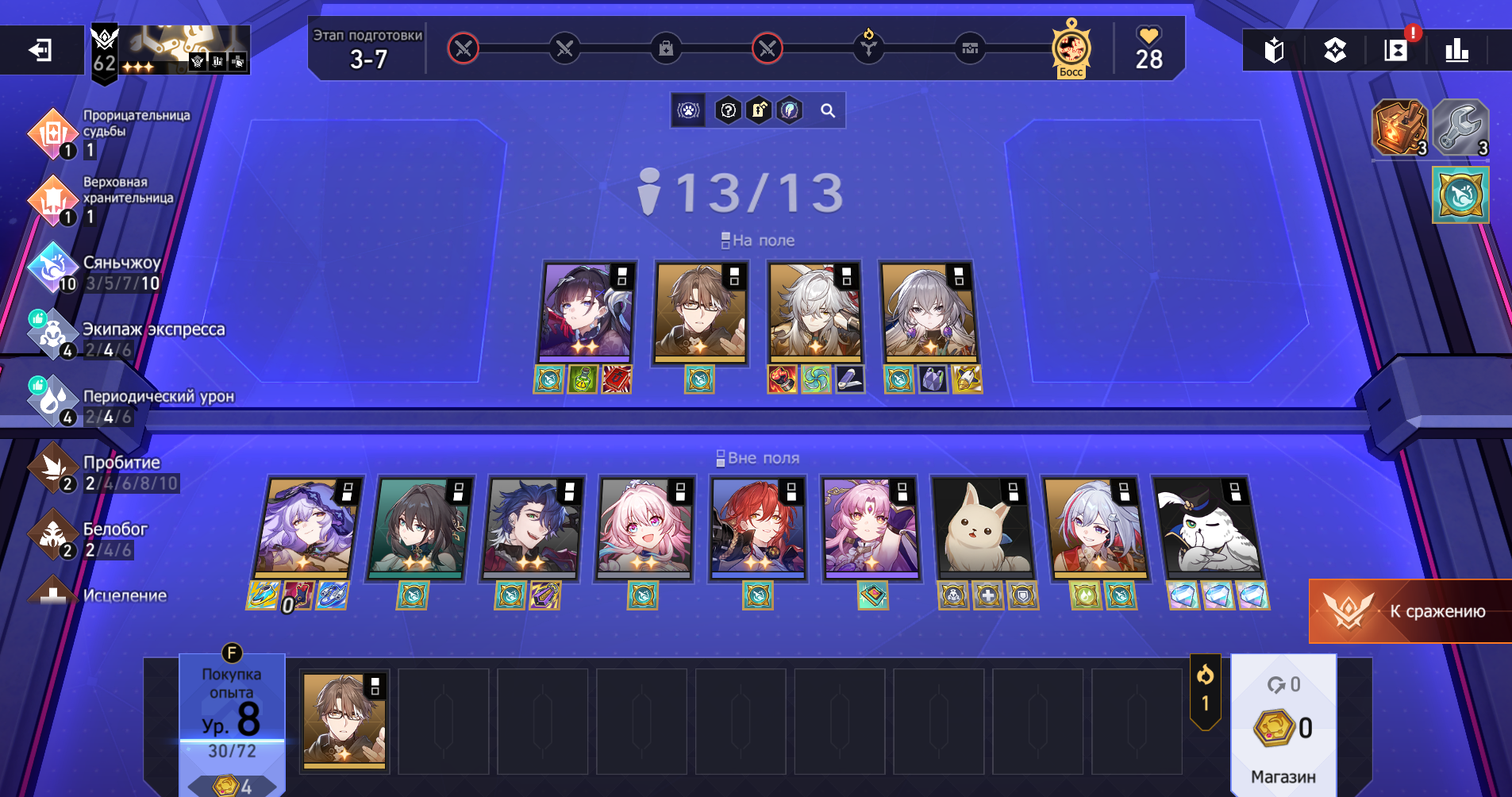 Добил алмаз 20. Режим весёлый, но баланс по ощущениям сильно перекошен в раш лвл9, 4ки и 5ки очень сильно грейдят пачку, намного сильнее чем звёзды на лоу кост юнитах. Даже Аглае, которая ультимативный гиперкерри в её сломанном билде, важнее выйти в 9й, достать Кирену и Фушку чем собраться в 3 звезды. В любом случае получилось намного интереснее, чем стандартный ремейк вируалко-рогалика от Ляо, в этой версии хотя бы есть скилл и реальный геймплей