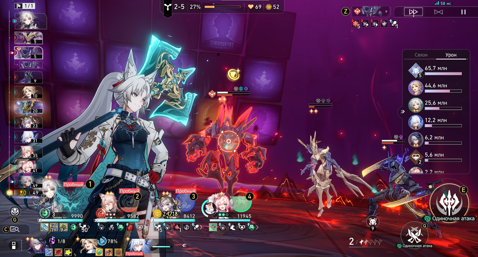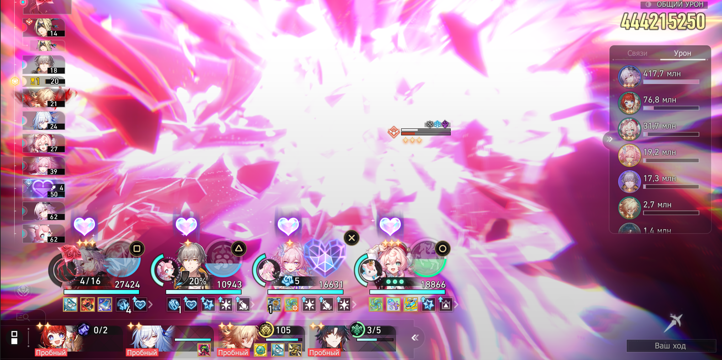Ща впервые потрогал Дэнчика. Нормально долбит. Даже триальный под х2 от Керидры ломает лицо ваншотом. Правда рандомная пачка, можно буквально за один ход Дэнчика получить ещё 3 хода и убить босса с рандомных спшек.