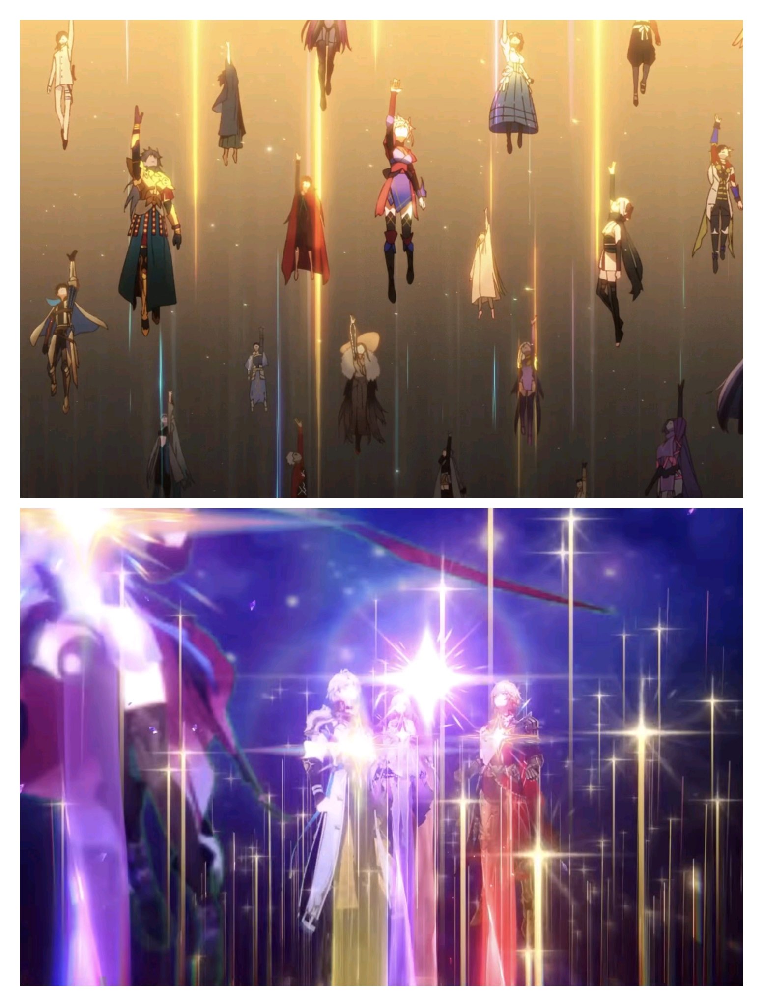 Пусть радуга вечно сияет в небе, делая прощание ещё прекраснее. Под звёздным светом во тьме простор бескраен, а любовь вечна, как этот миг. Эпос завершён