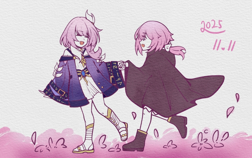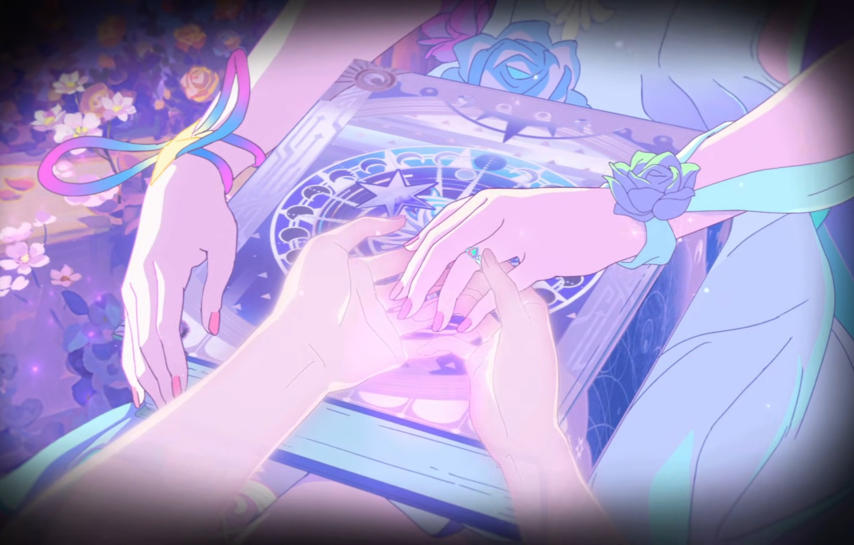 — Хи-хи, мы пообещали друг другу. Девушка оборачивается с улыбкой. — Пока один из нас остаётся в прошлом, другой идёт к будущему... Но наши сердца никогда не разлучатся ♪