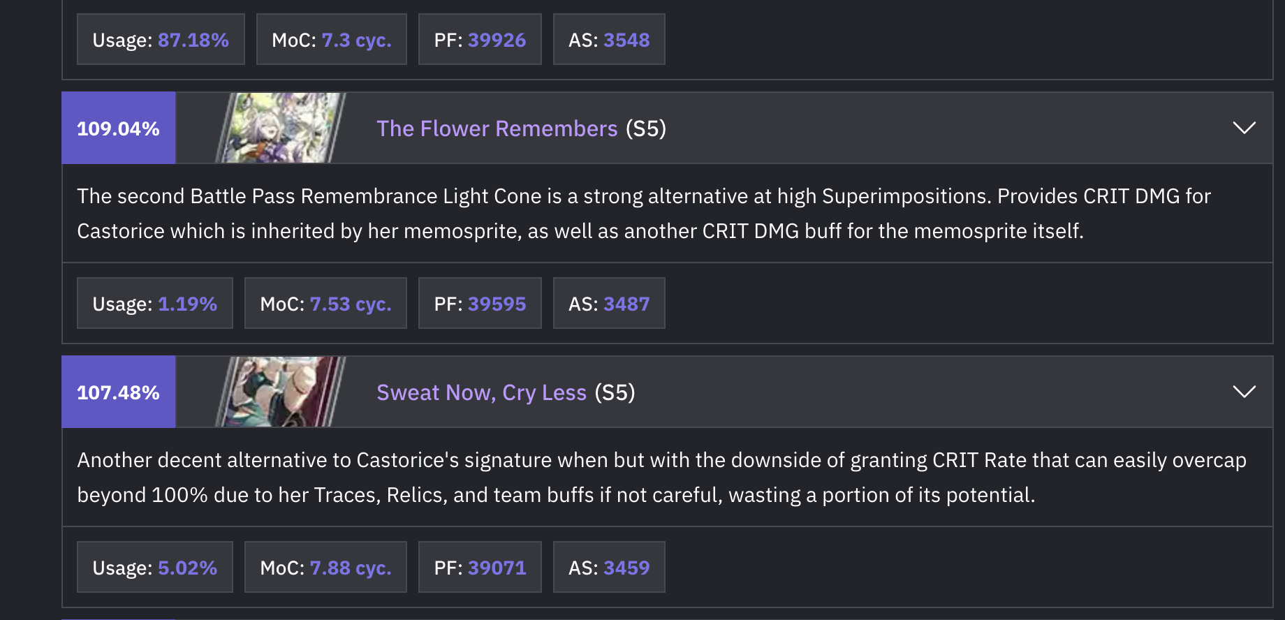 Вообще в табличке давно пора считать конусы за пол коста. Мало того что они тупо дешевле по крутками/прокачке, так они ещё и не залочены намертво за чариком как эйдолоны. Что как бы делает их технически ещё дешевле.
