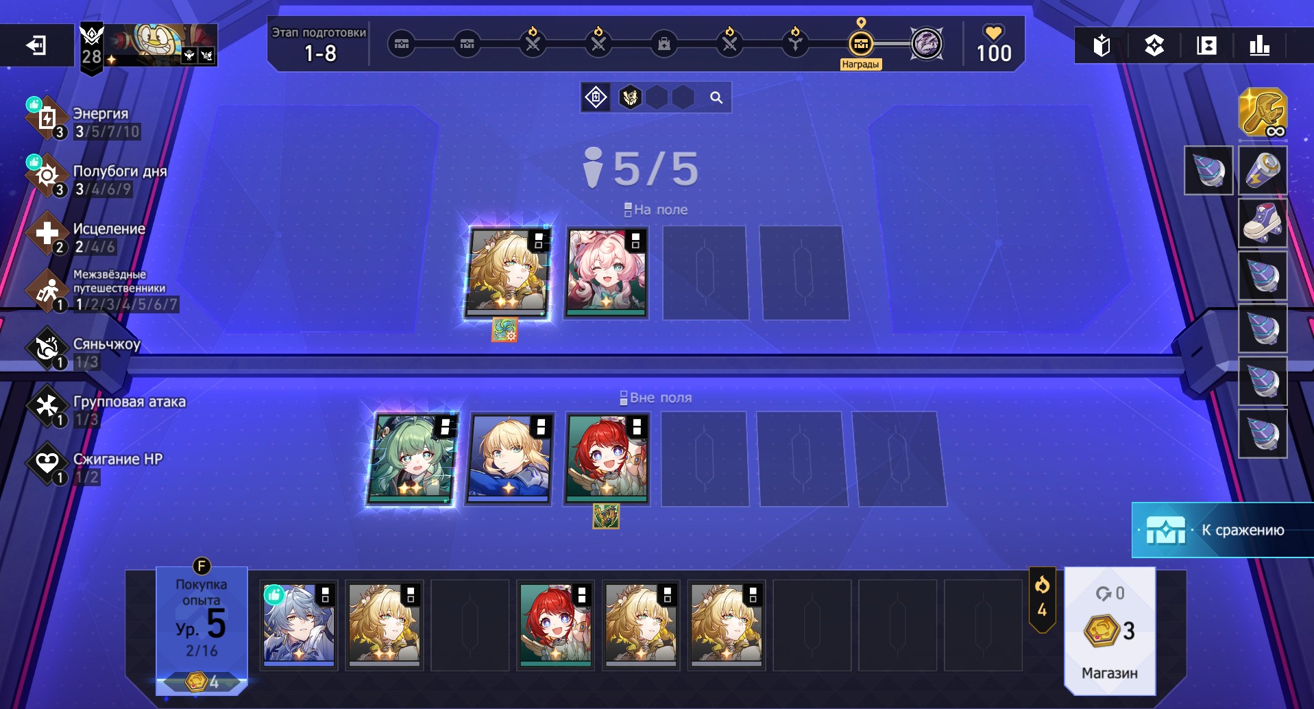 Поиграл в каловый TFT-режим: 1. Работают только максхп и групповая атака 2. На встречах можно выбирать только левый пункт 3. Эйдолоны персонажей просто разъёбывают все живое, разница между Е0 и Е2 персонажами в этом режиме просто отвратительно несправедливая 4. Шанс выпадения нормальных персонажей для построения кора вроде Герты или Каси (и Калрены) просто микроскопический, я ебал 5. Без полностью прокаченного древа идти дальше фиолетовой голды не имеет смысла