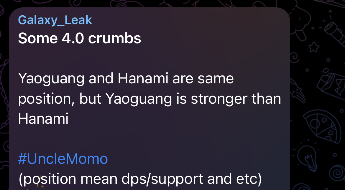 >>5885874 На стриме 3.8. 12 декабря, но там будет лишь тизер с персами. Дрип Ханаби и Яо Гуан 9 и 10 декабря. Возможно ещё на ТГА 10 или 11, не помню когда точно, возможен тизер Эдо и крольчихи.